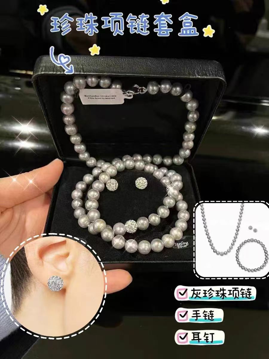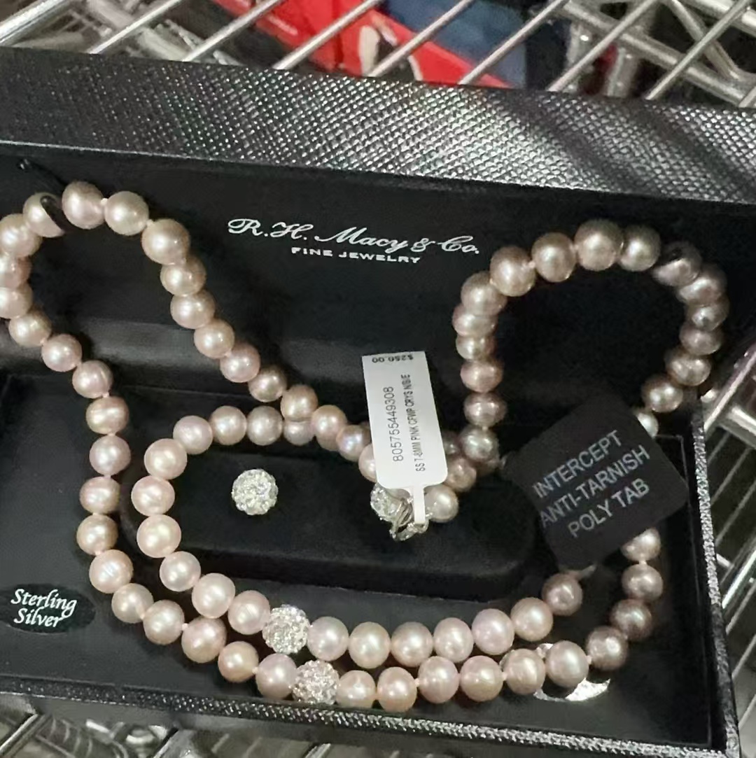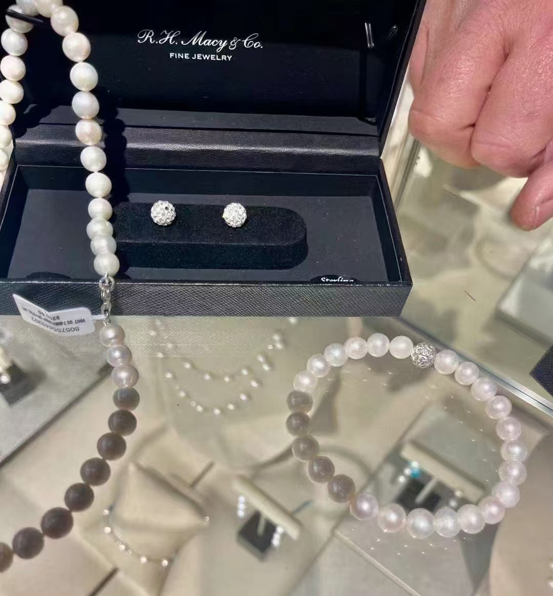 到手价699元 Macys梅西百货珍珠项链手链耳钉三件套 纯珍珠 银针耳钉 美国代购,无中文标签,介意慎拍