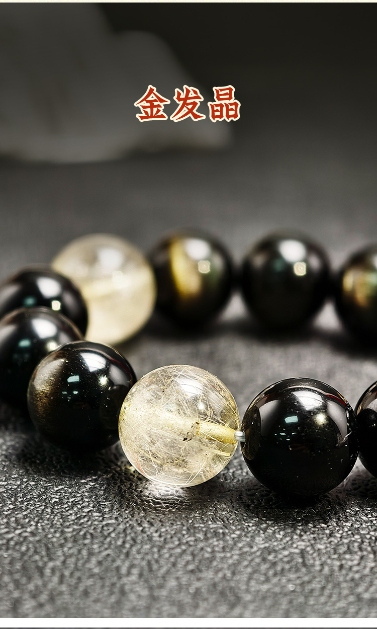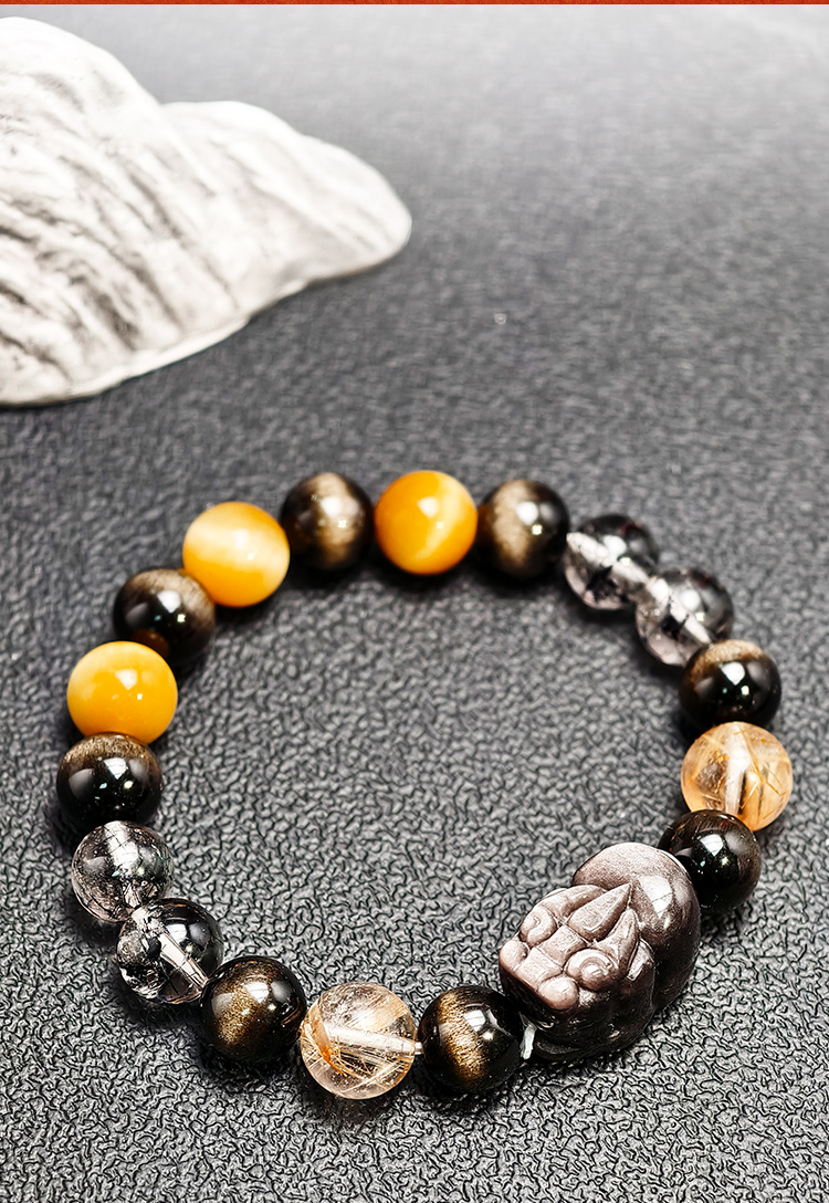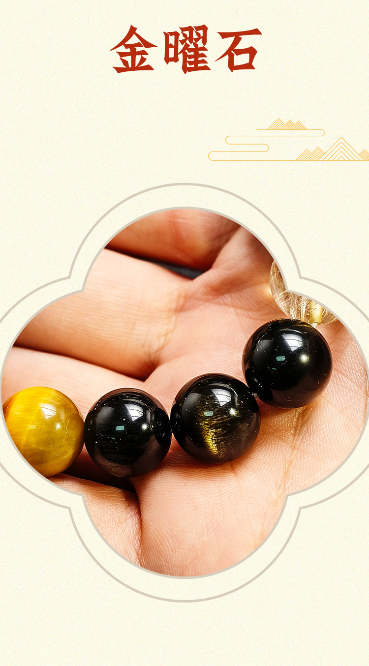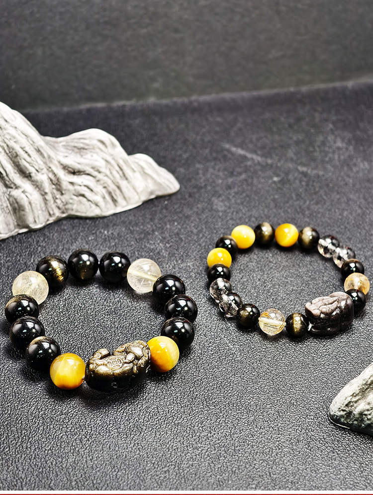 易祈吉祥金虎眼手串金银曜石貔貅饰品虎眼石男女款黑发晶手链