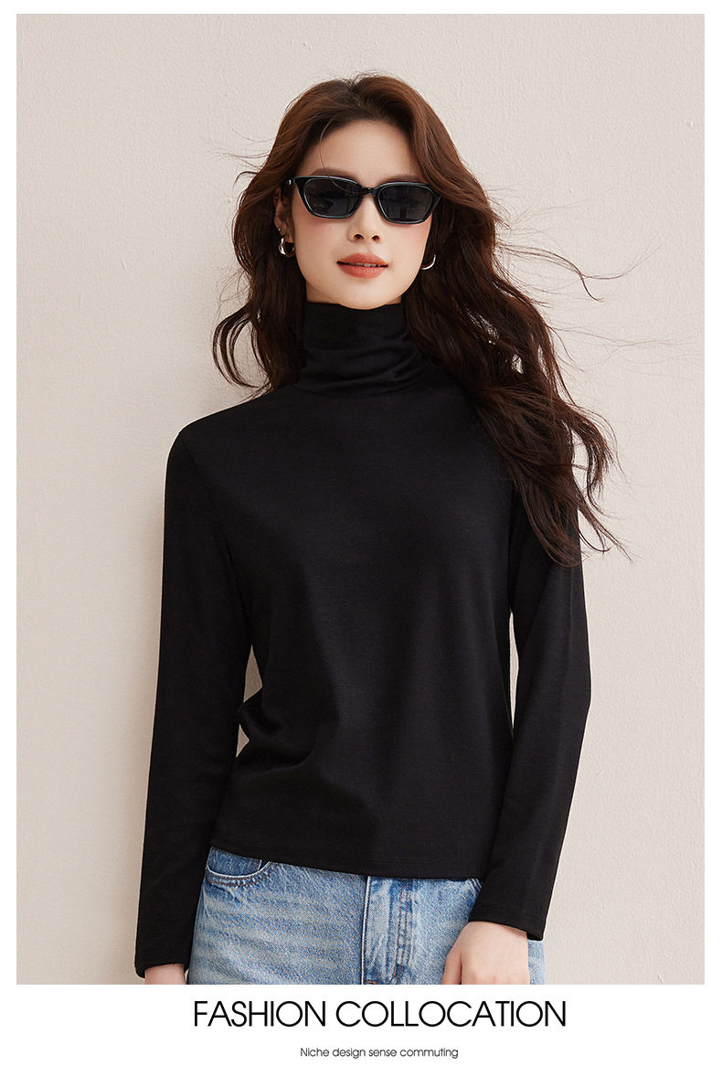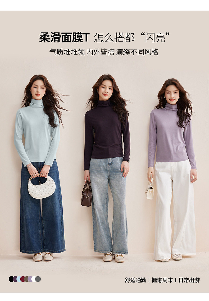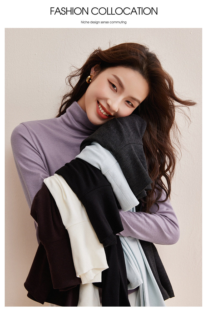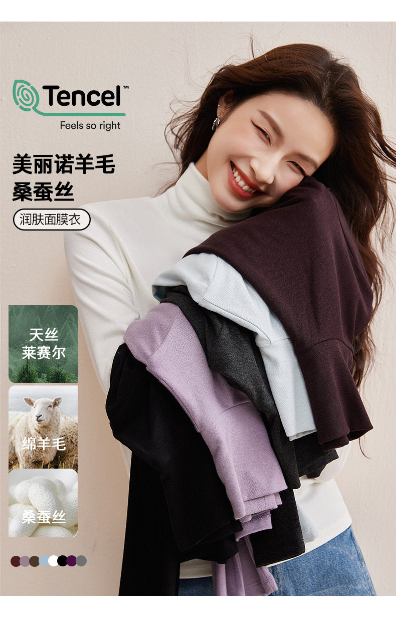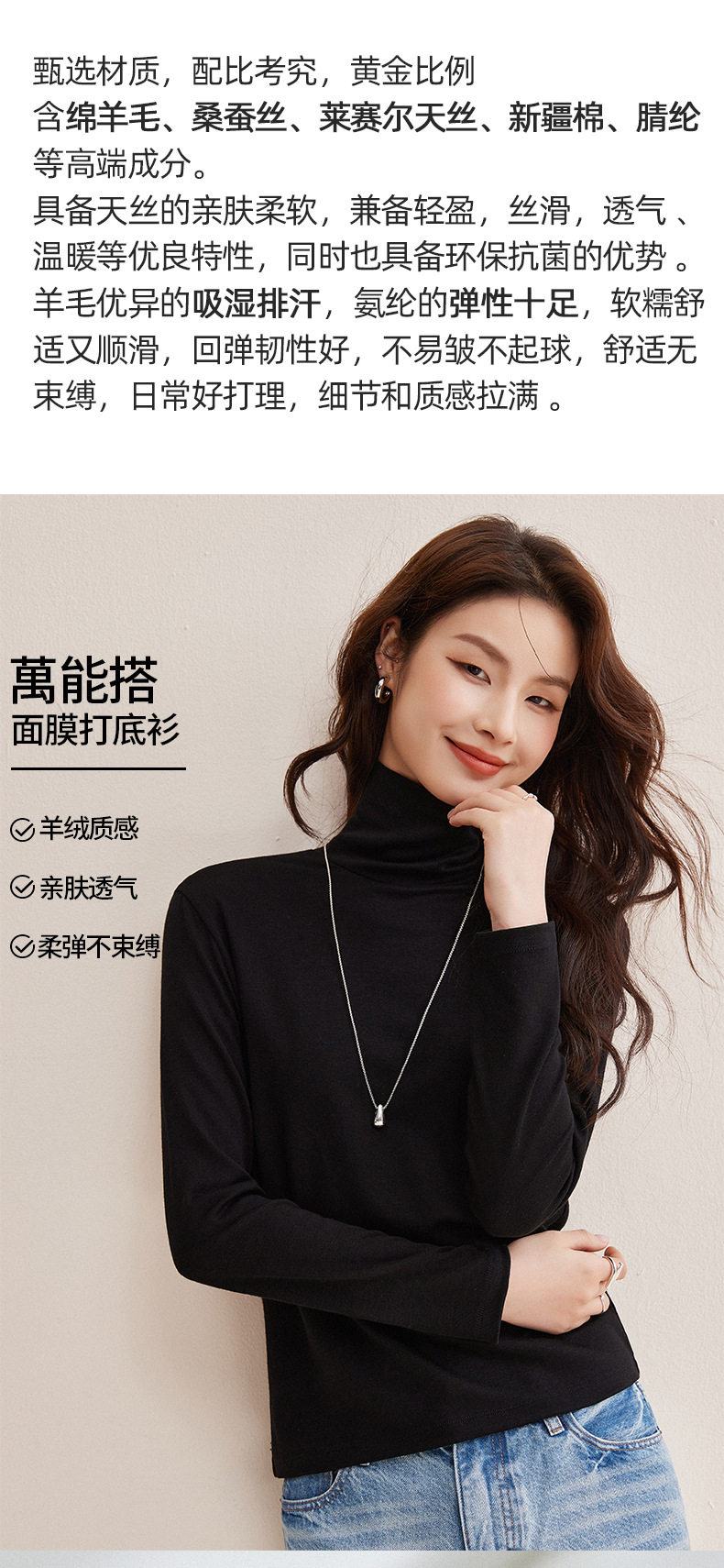 「自j」全新升级【铂金会员119/天猫159/差价40】(95819)洛诗琳气质天丝羊毛打底衫2026春季新款百搭显瘦堆堆领上衣