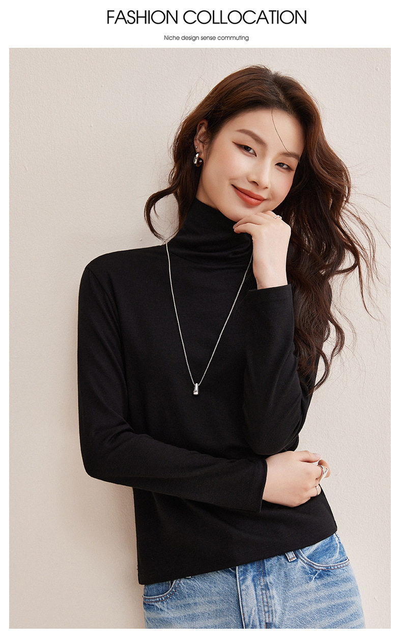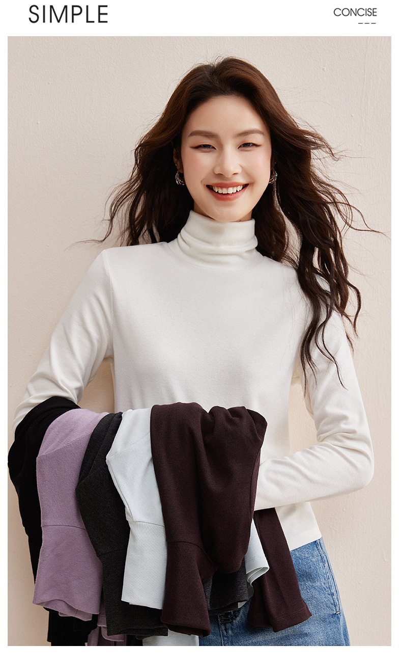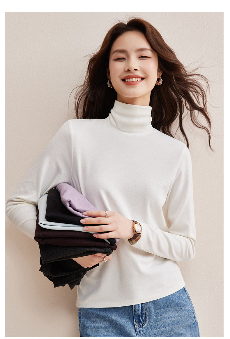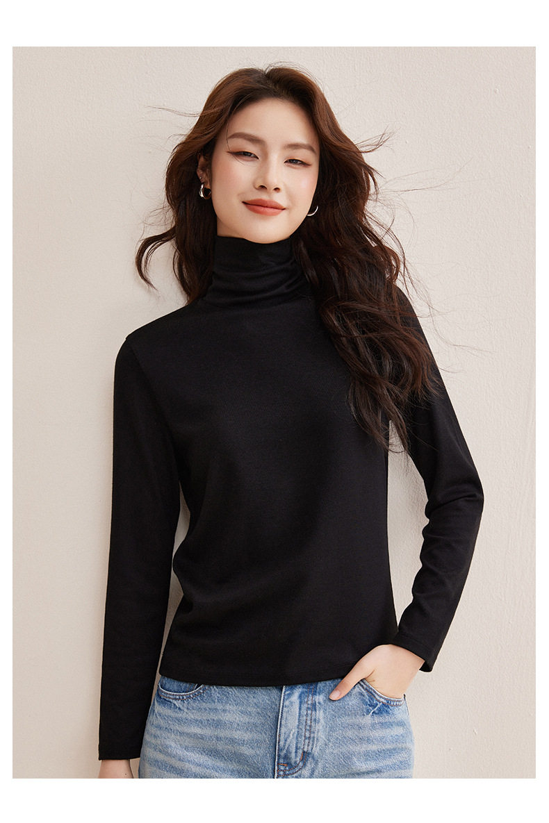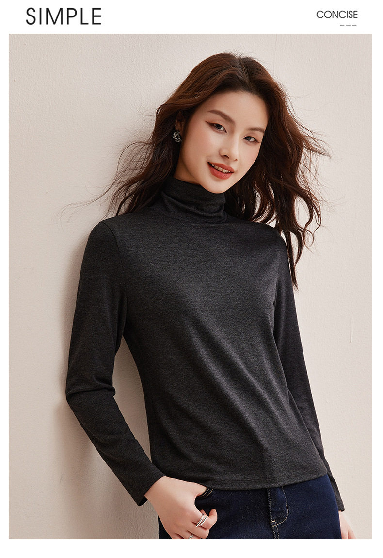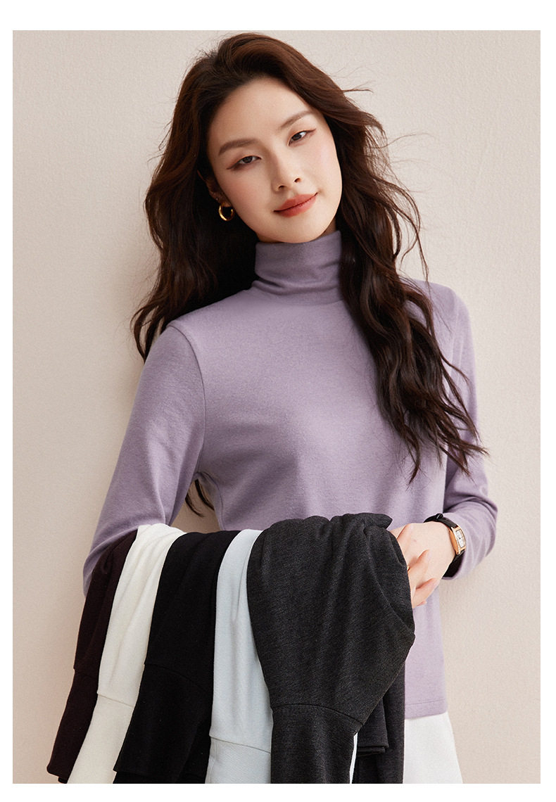 「自j」全新升级【铂金会员119/天猫159/差价40】(95819)洛诗琳气质天丝羊毛打底衫2026春季新款百搭显瘦堆堆领上衣