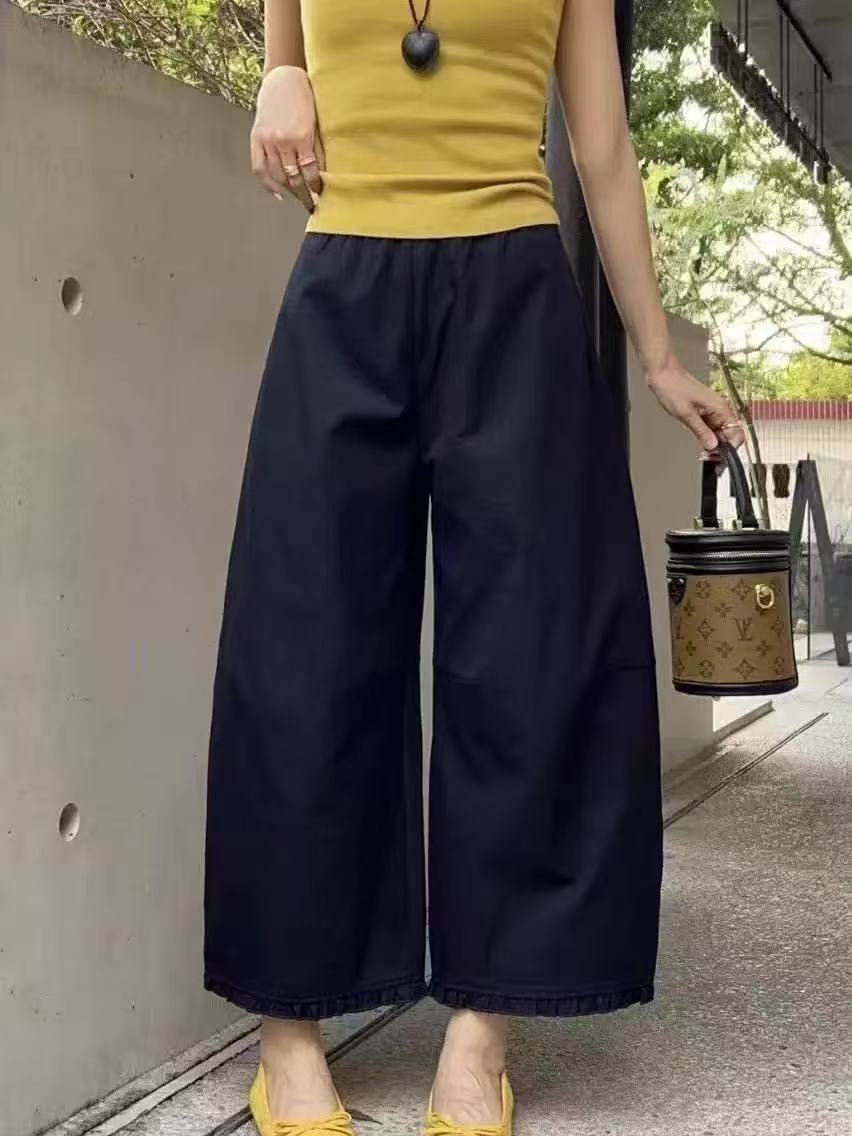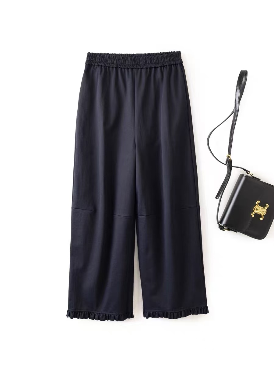 双十一特卖!!B017高品质裤脚花边秋季新款显瘦九分裤-喜出