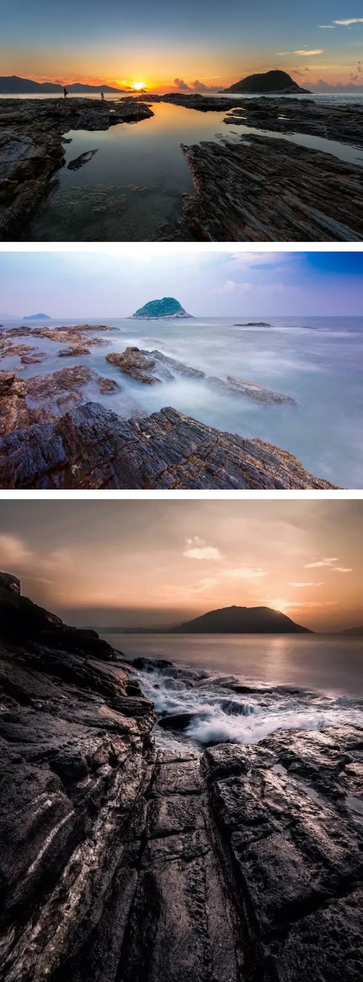 辽阔的大海、蔚蓝的天空、奇特的礁石,形成了现在独有的大自然的鬼斧神工。