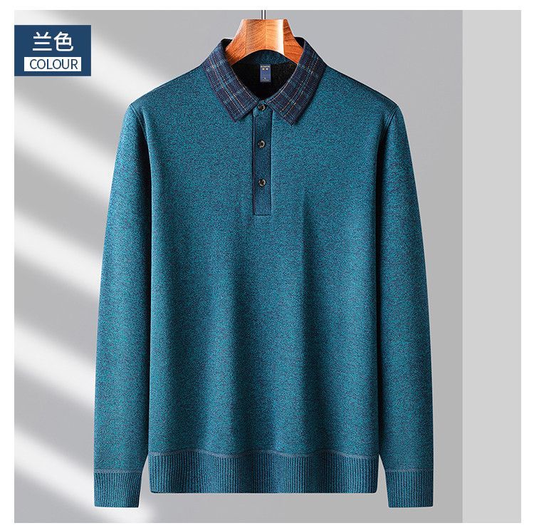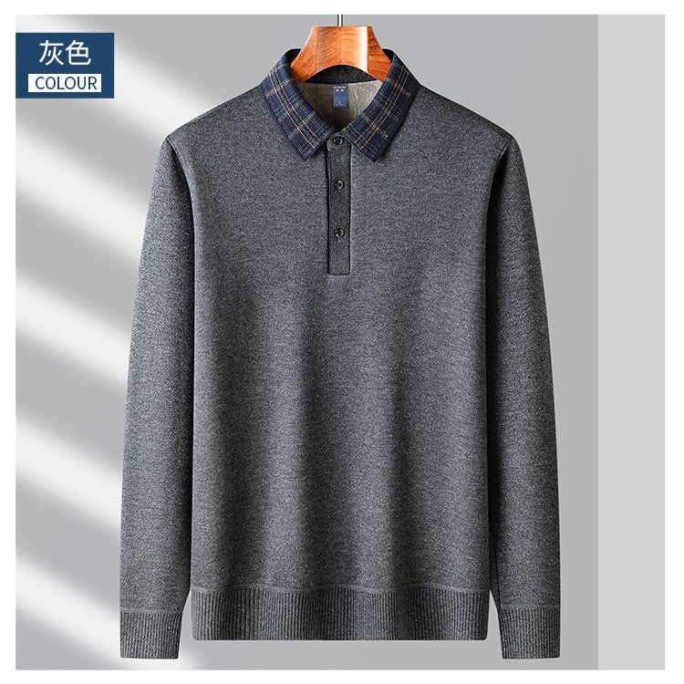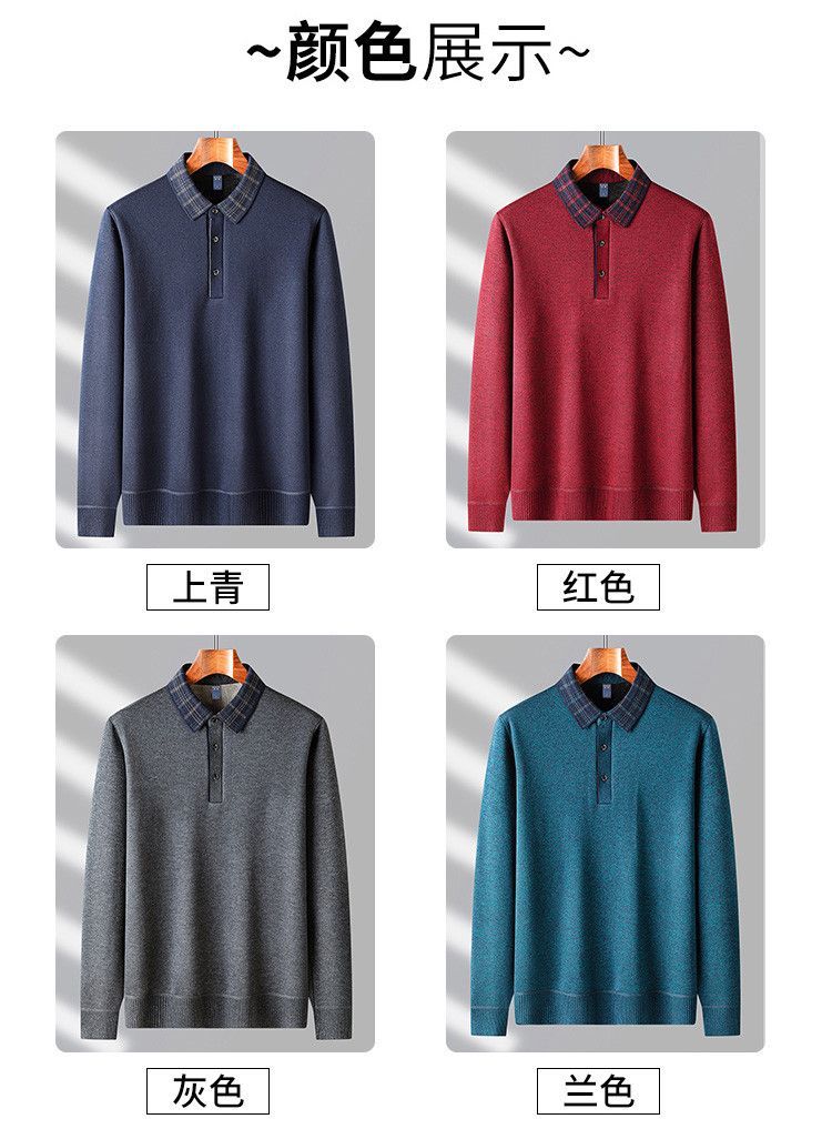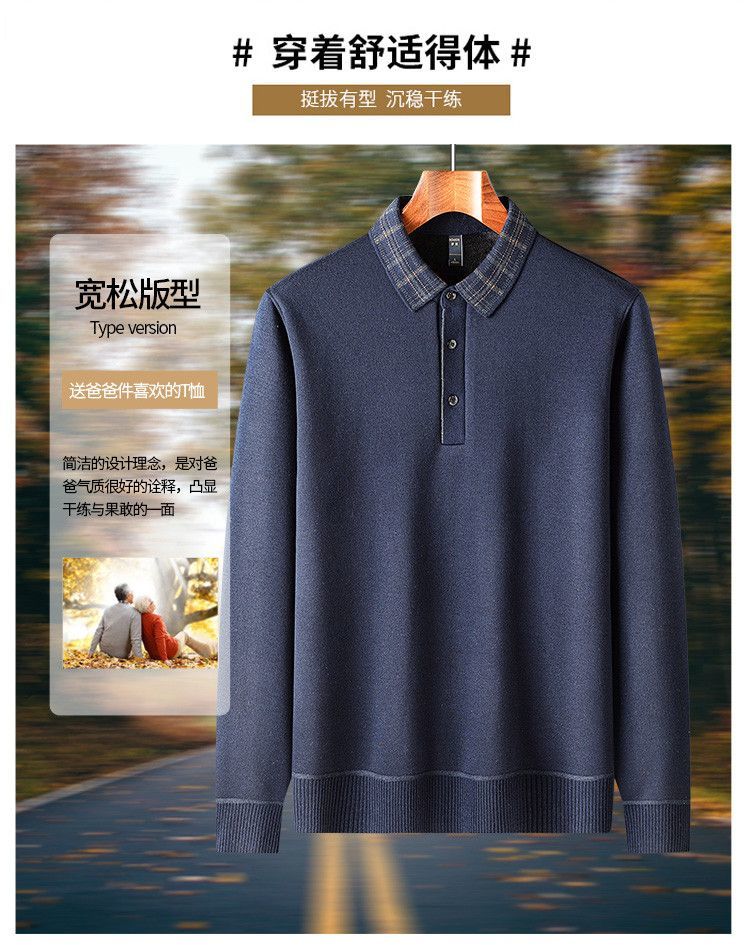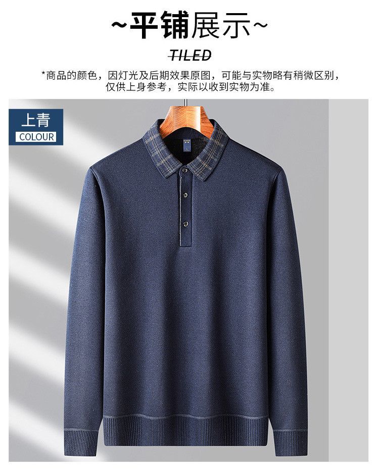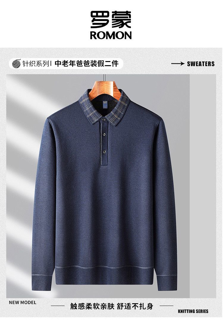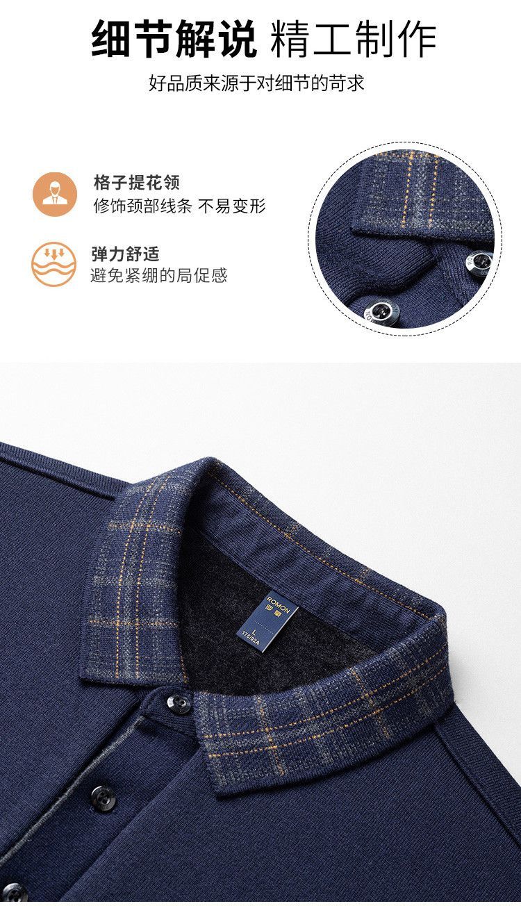 27DKYP2712【加绒加厚】罗蒙秋冬含羊毛t恤男长袖polo衫男加绒休闲毛衣男士针织衫