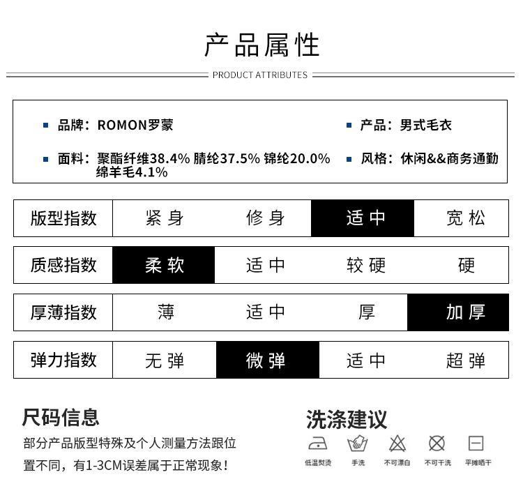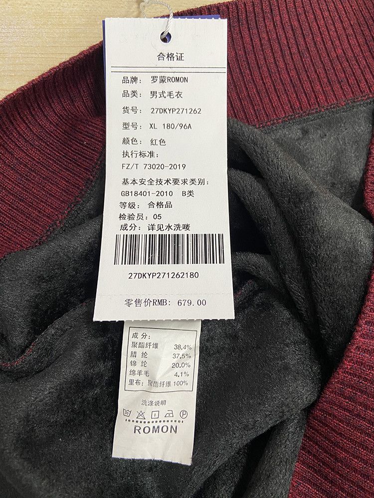 聚酯纤维38.4% 腈纶37.5% 锦纶20.0% 绵羊毛4.1% 里布:聚酯纤维100%