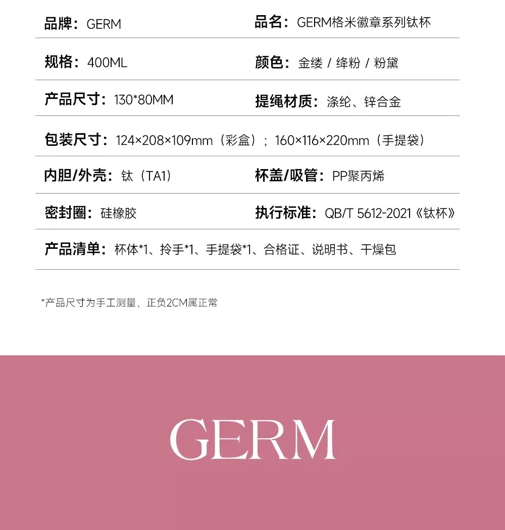 GERM格米徽章系列钛杯-金缕-400ml