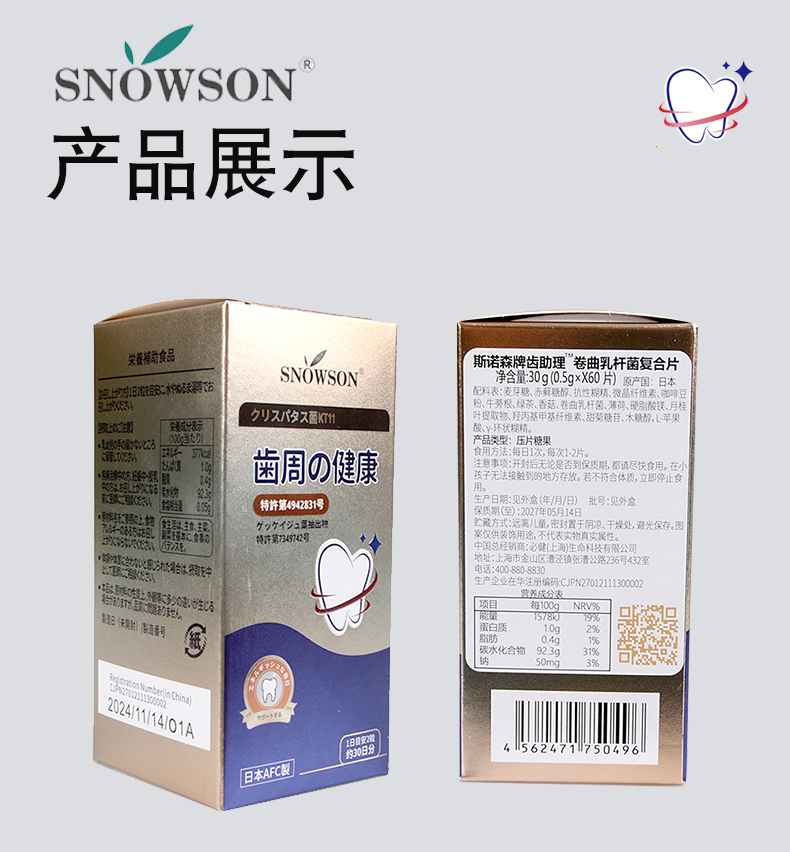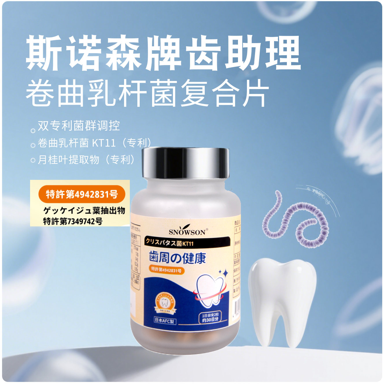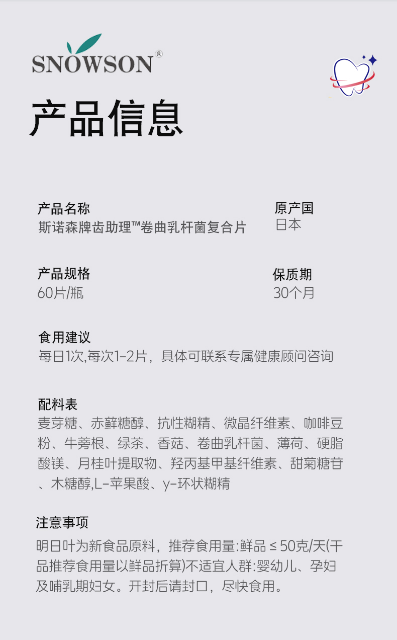 斯诺森齿助理卷曲乳杆菌复合片 牙齿营养 日本原装进品 口臭异味益生菌