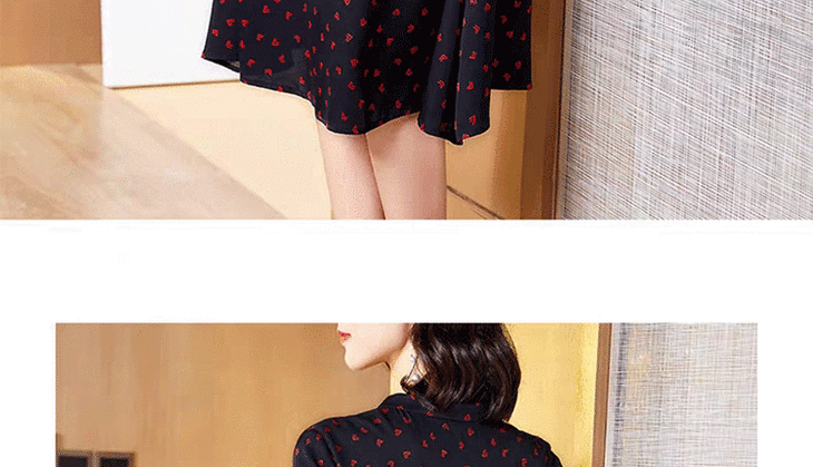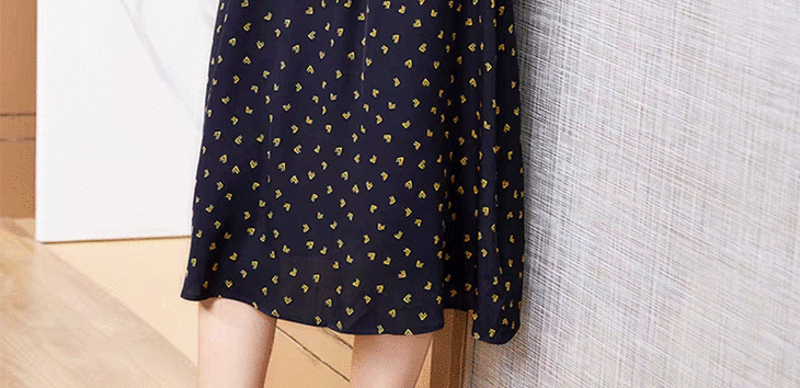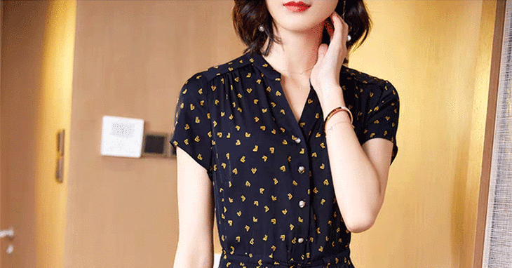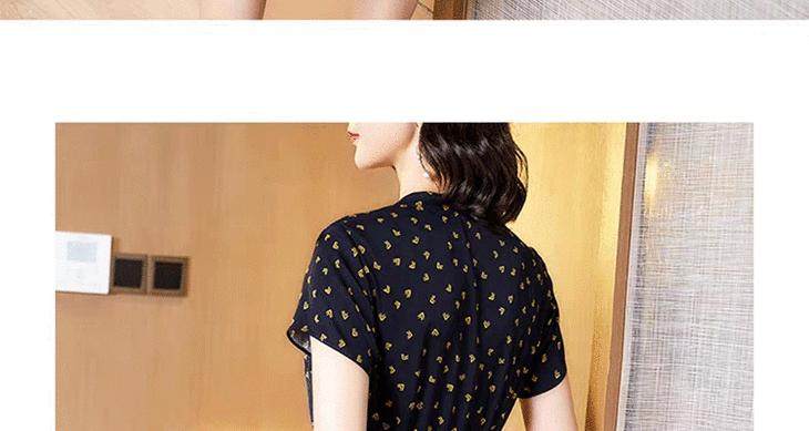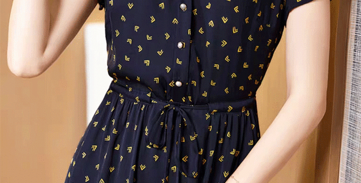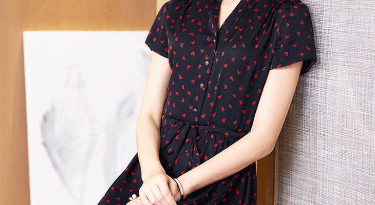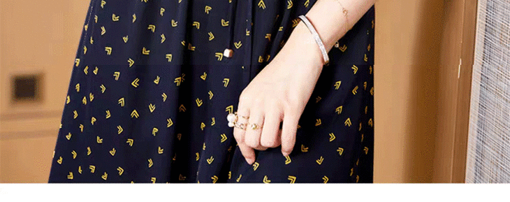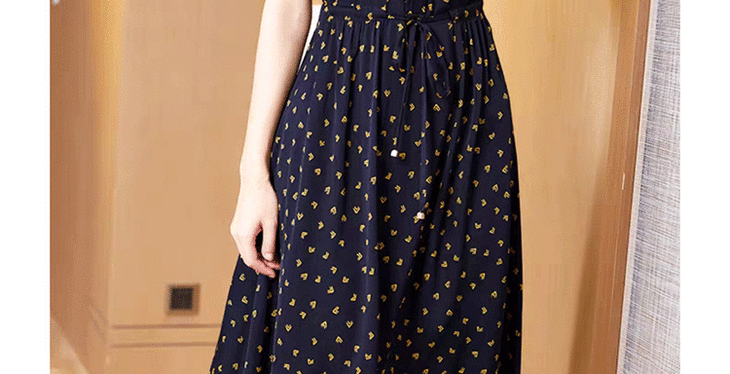丁摩 真丝连衣裙新款显瘦女桑蚕丝印花V领系带收腰裙20-165DA499