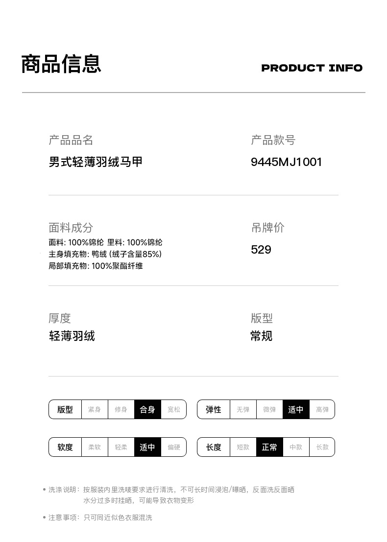 卡尔美男式轻薄羽绒马甲