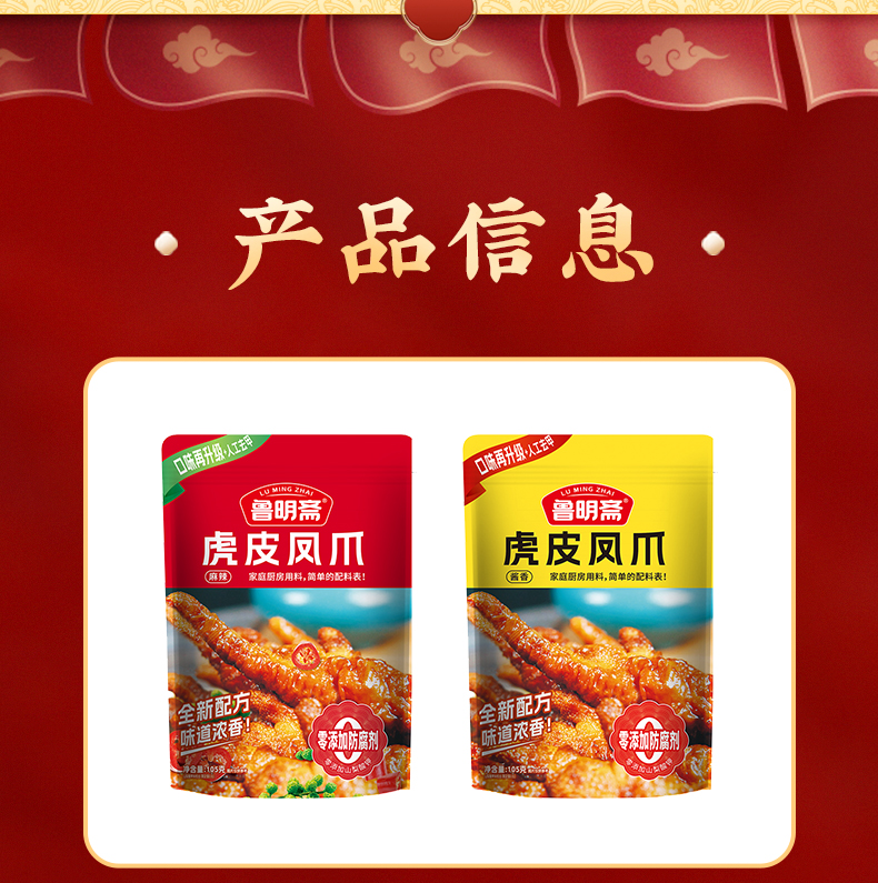 麻辣配料表:鸡爪、高汤(饮用水、老母鸡)、食用盐、辣椒、藤椒、食用大豆油、酿造酱油(含焦糖色)、冰糖、味精、香辛料