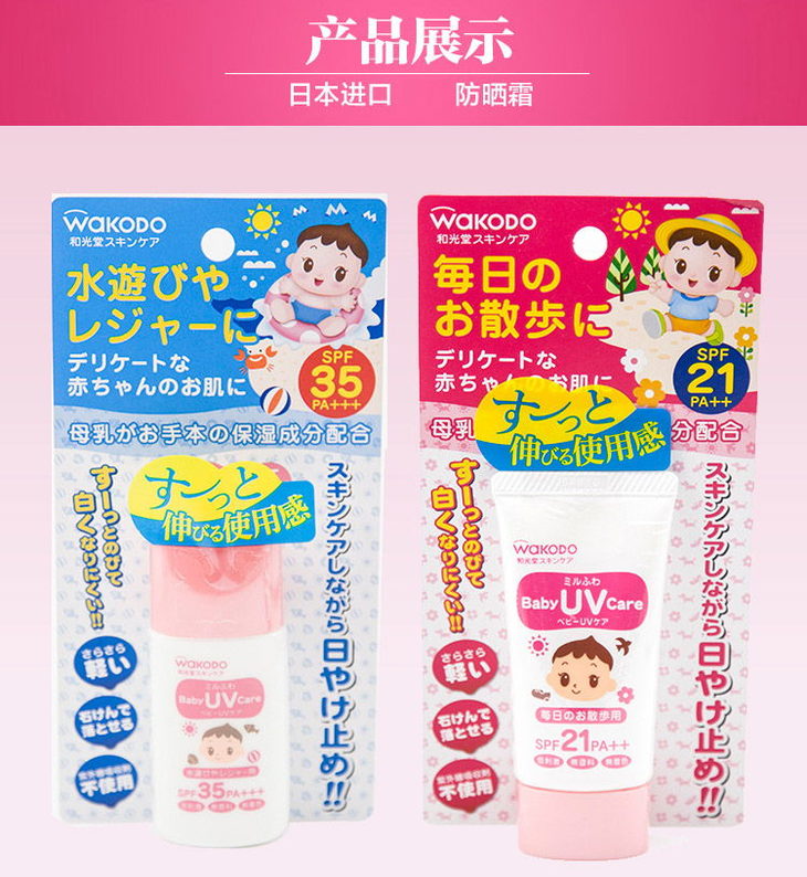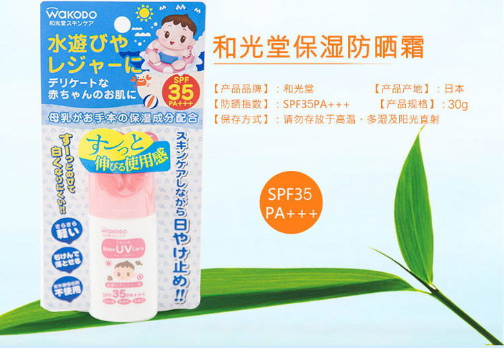 日本Wakodo和光堂婴儿儿童防晒霜-SPF21/SPF35 -30g(版本随机发货)