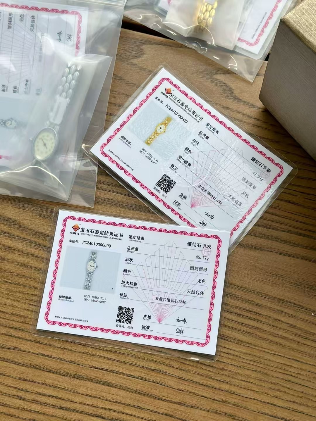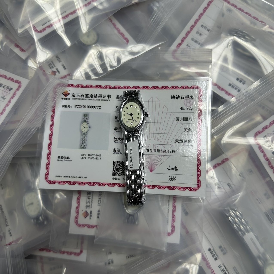表盘上镶嵌12粒大小不一高低不一的天然真钻,最大的有1.4mm,小的0.8mm,气质奢华典雅,一表一码配省检GTC证书 机芯采用瑞士原装进口石英机芯,超薄精巧,走时精准耐用