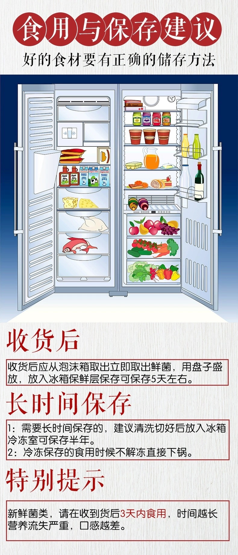 【储存方法】:用吸水纸包裹后放入保鲜盒,冰箱保鲜层保存,忌沾水,请于5-7天内食用;未食用完,可洗净后放置(-18°)冷冻保存,(建议6-12个月食用完)