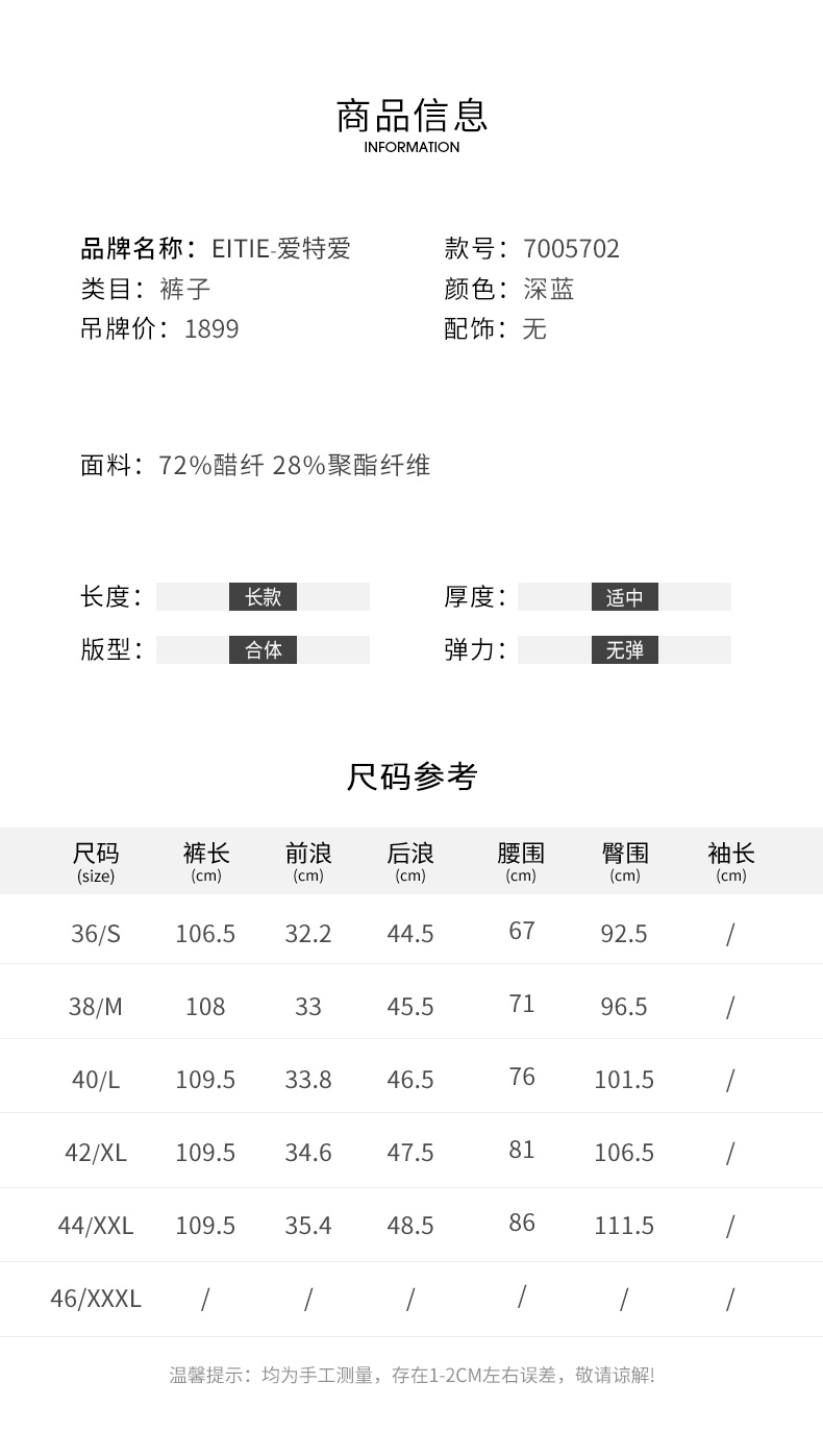 EITIE爱特爱夏季新款通勤时尚职业百搭显瘦直筒长裤女7005702
