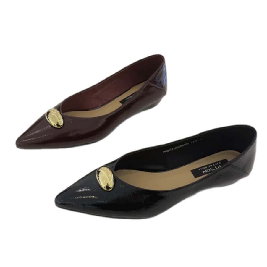 PT'SON百田森 女鞋尖头浅口时装单鞋2025春季新款复古两穿低跟鞋PYQA5110