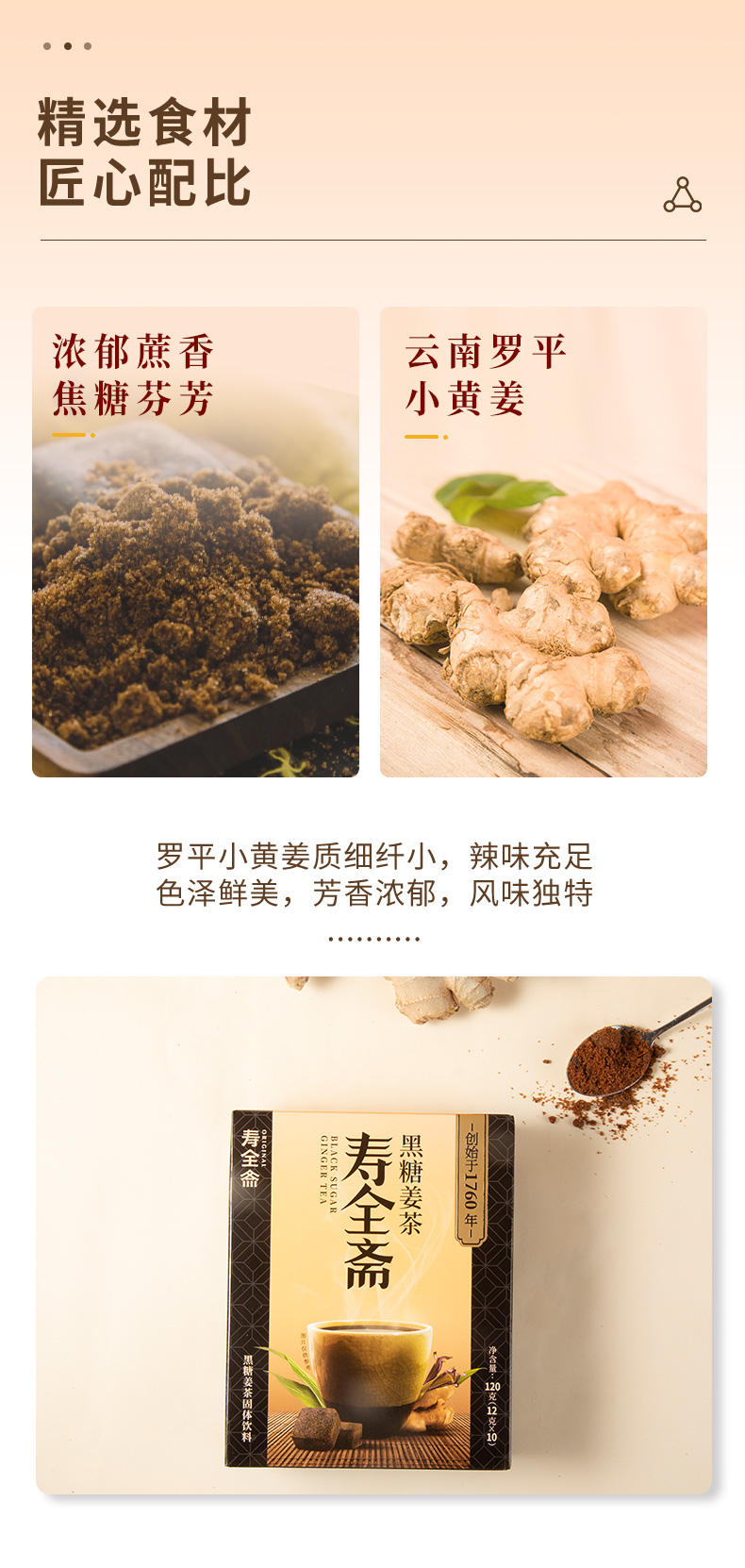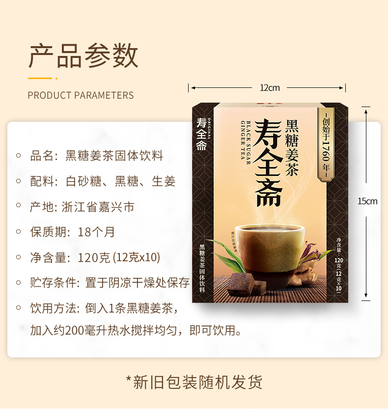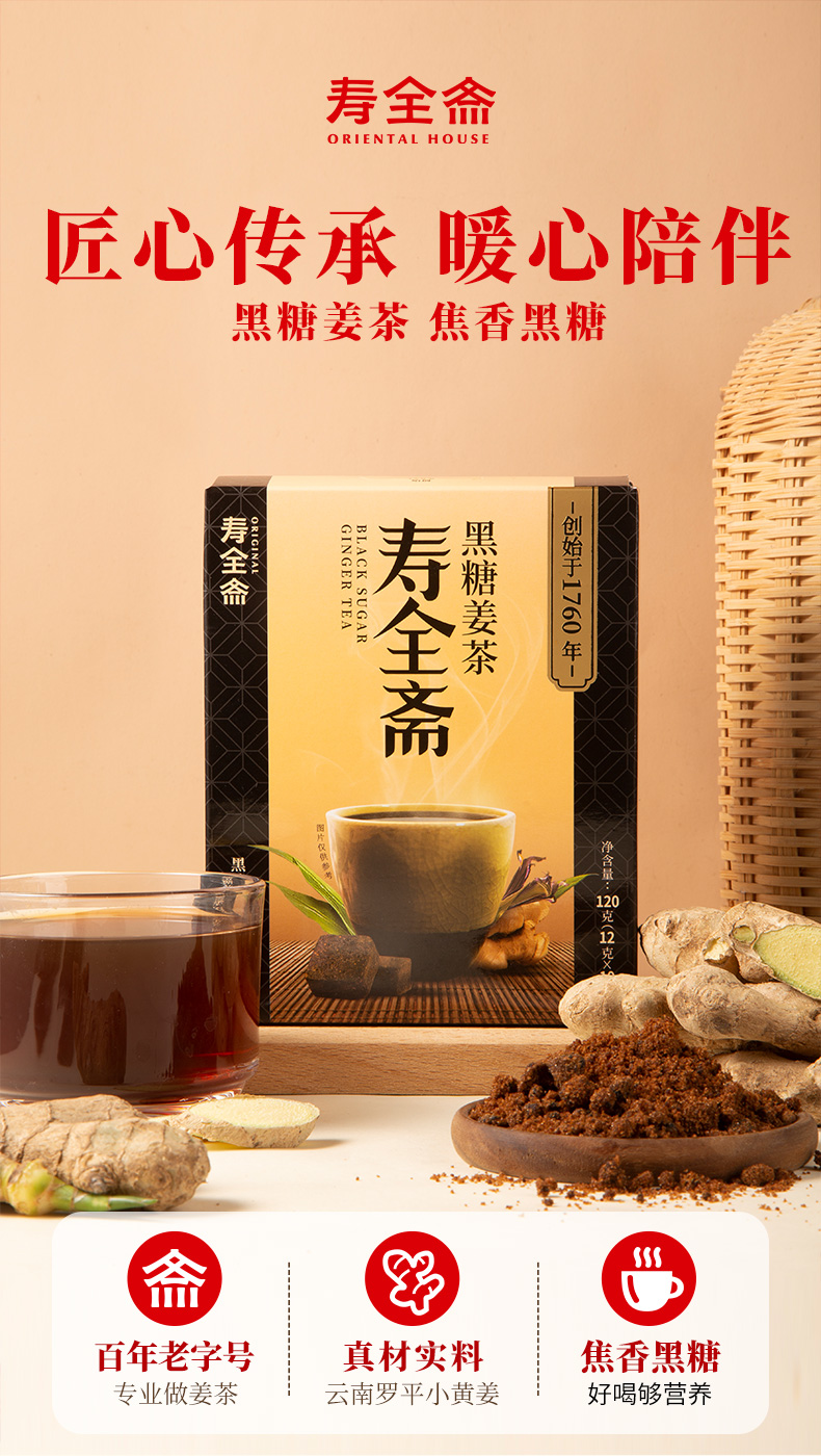 【女神节】【中华老字号】寿全斋 黑糖姜茶 2盒装 120g*2