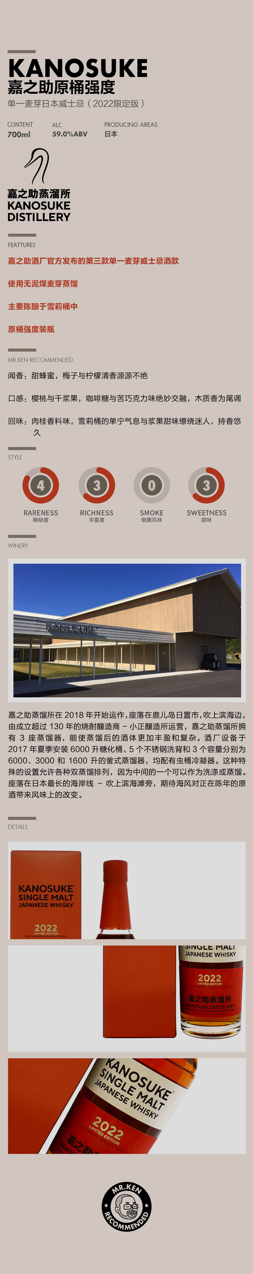 【套组】嘉之助(Kanosuke)原桶强度单一麦芽日本威士忌 (2022+2023限定)