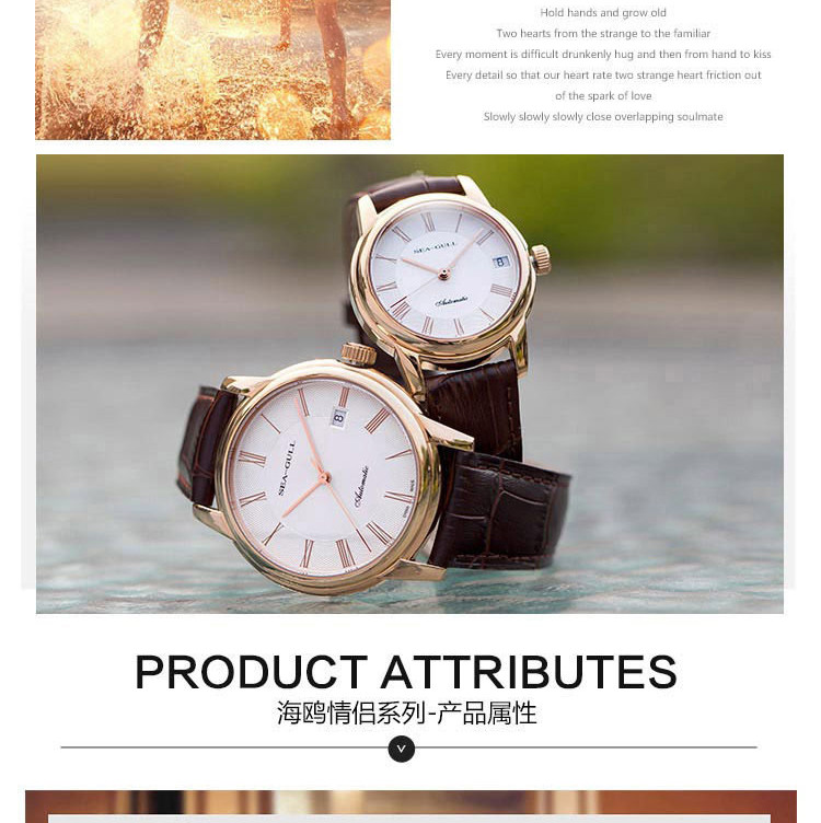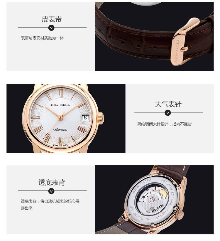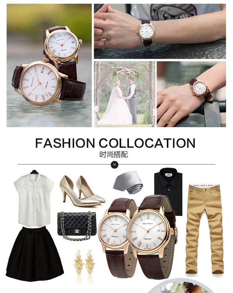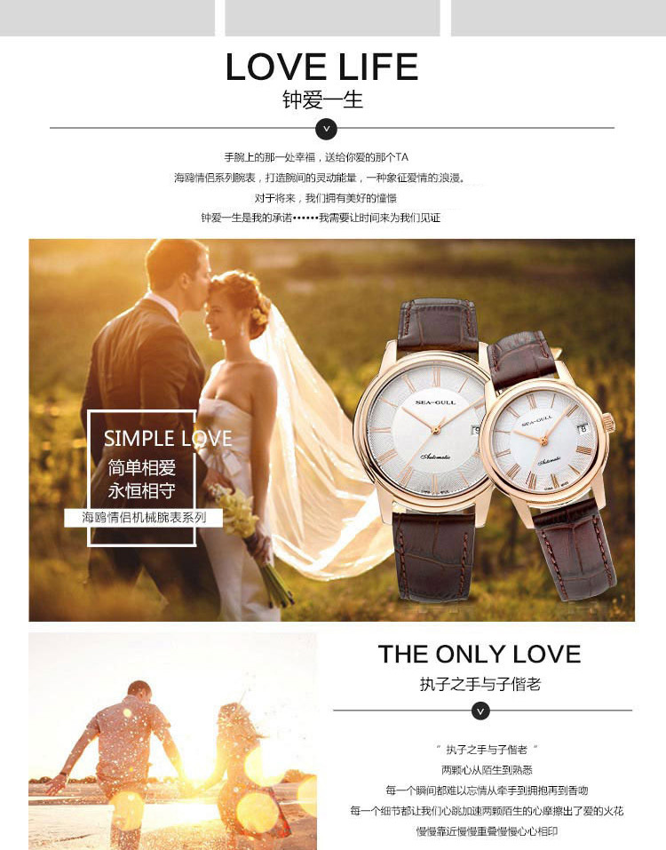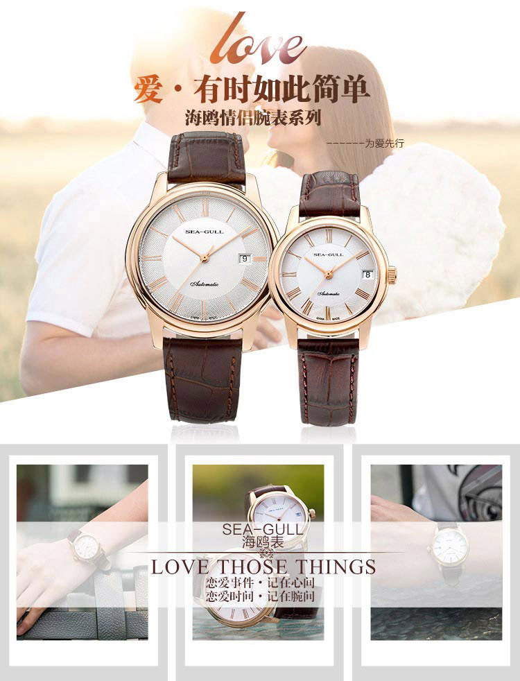 SEA-GULL/海鸥表 情侣表商务百搭复古时尚休闲单历自动机械情侣对表手表 送礼礼物