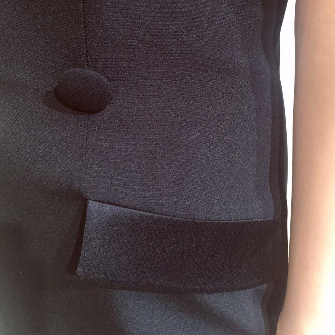 黑色抹胸鱼尾曳地长礼服以精准的剪裁雕塑并美化身形,表达现代女性简单真我的态度。抹胸及口袋处富有光泽的黑色真丝拼接更显摩登格调,鱼尾开衩的裙摆勾勒出窈窕的曲线,恰如其分地展现出腰臀及腿部的曼妙身姿,整体显得更加修长,是出席晚宴的品位之选。