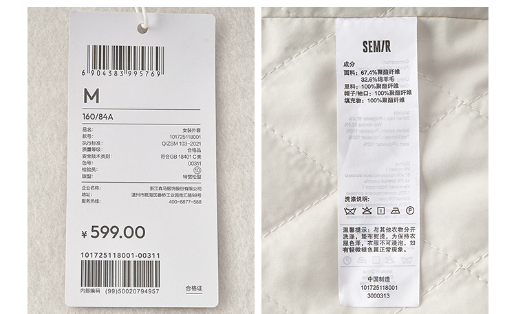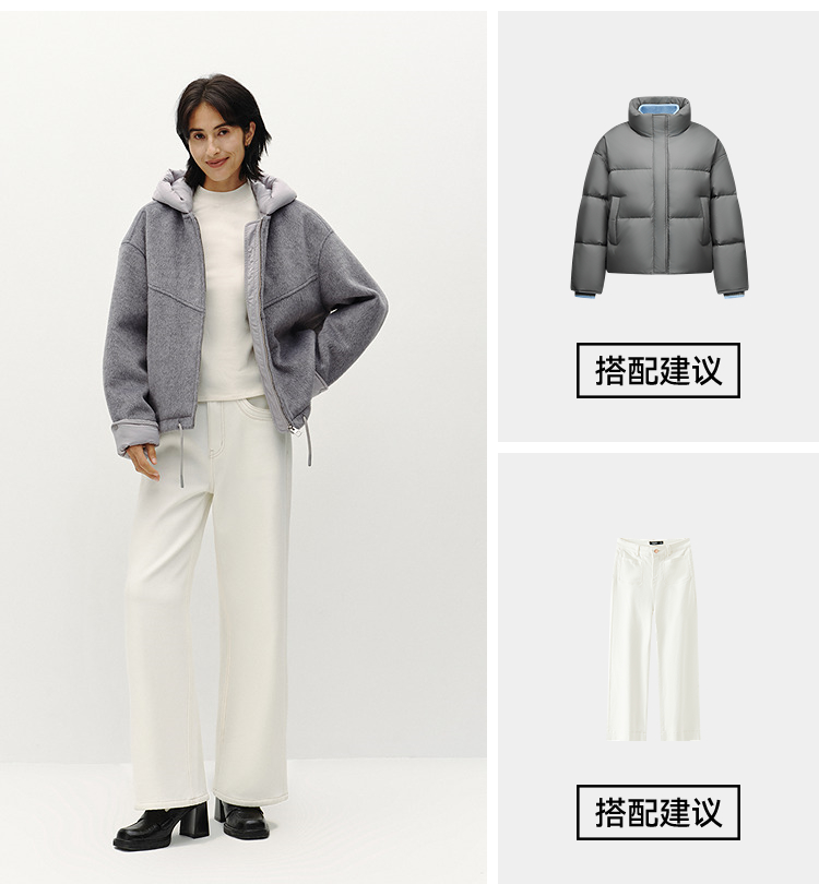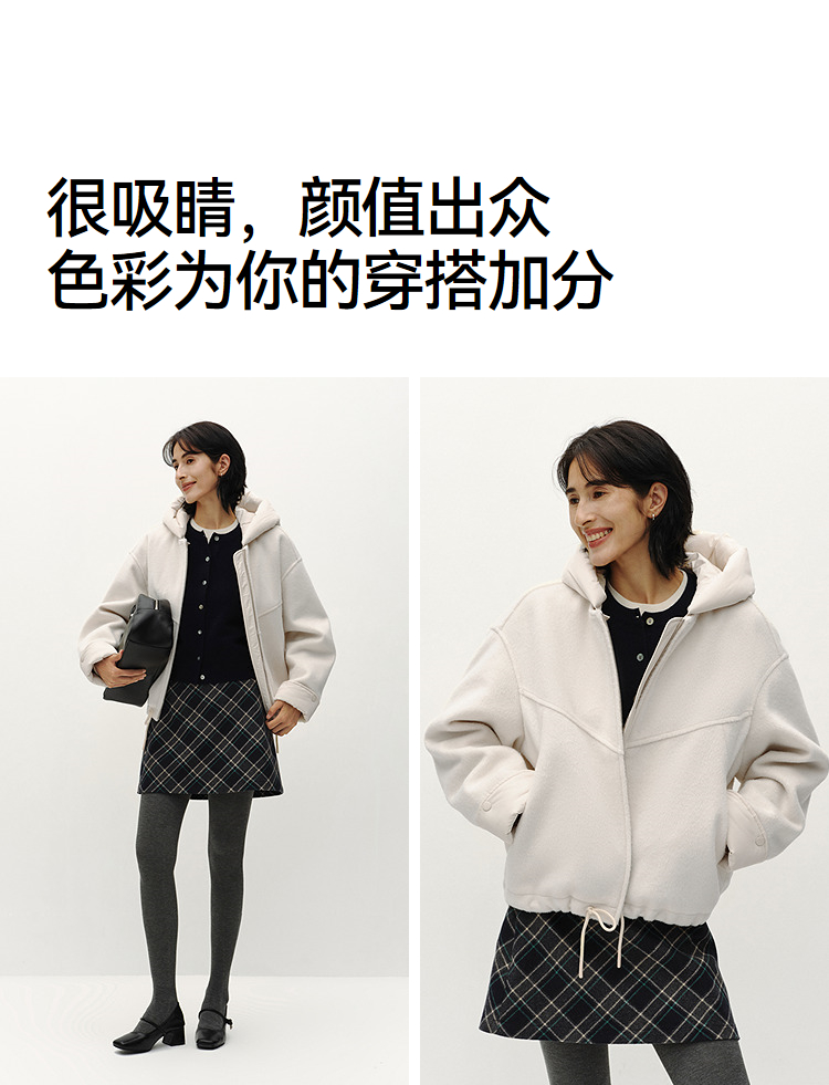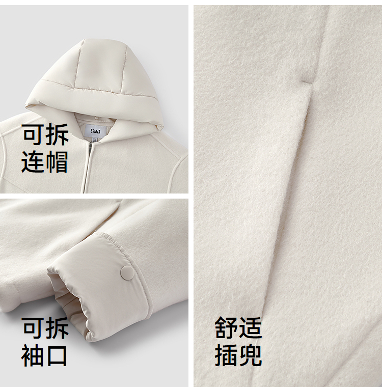 商场同款|森马外套女冬夹棉毛呢oversize含羊毛2025新款百搭上衣