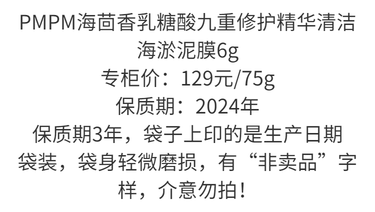 【爆款超低价预售 急单慎拍】5支装 PMPM海茴香乳糖酸泥膜小样深层清洁毛孔补水保湿涂抹式面膜