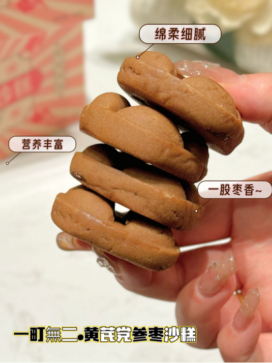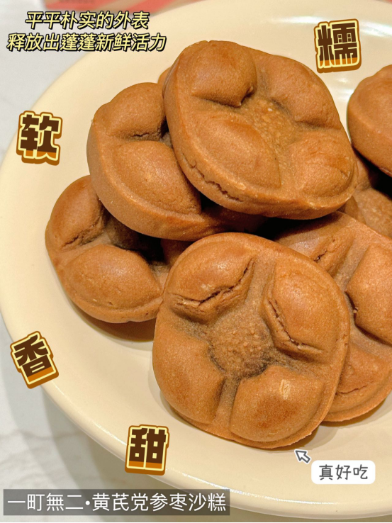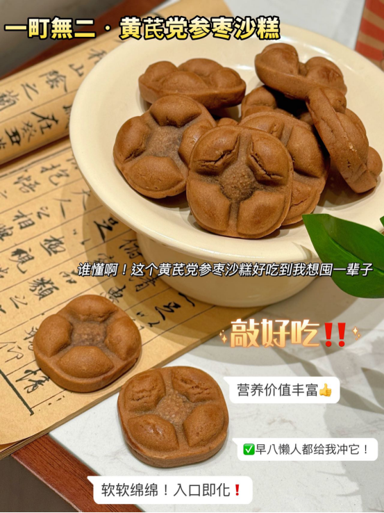 这款沙糕可是满满的养生能量 黄芪补气固表,党参养血生津,红枣补中益气,全是养生好物 工作忙碌顾不上吃饭时,随手来一块,既能饱腹又能滋补老人小孩也能吃,当作日常小点心再合适不过 无论是当早餐开启活力满满的一天 还是下午茶解馋,它都是绝佳选择