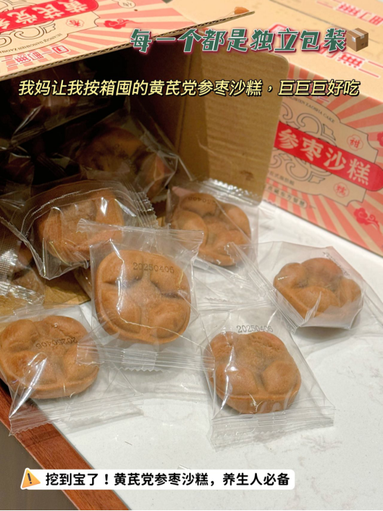 养生女孩快看!把黄芪党参红枣做成沙糕也太会了吧! 0添加蔗糖却自带自然甜香,软乎乎的口感像在吃云朵~ 独立包装揣包里超方便,下午茶时间来一个,健康又治愈,打工人幸福感拉满! 姐妹们信我!这款黄芪党参枣沙糕真的能处! 补气血绝绝子,连喝一周脸色都红润了~重点是完全没有中药苦味,反而越嚼越香! 当早餐、解馋小零嘴都超合适,养生党闭眼冲就完事!