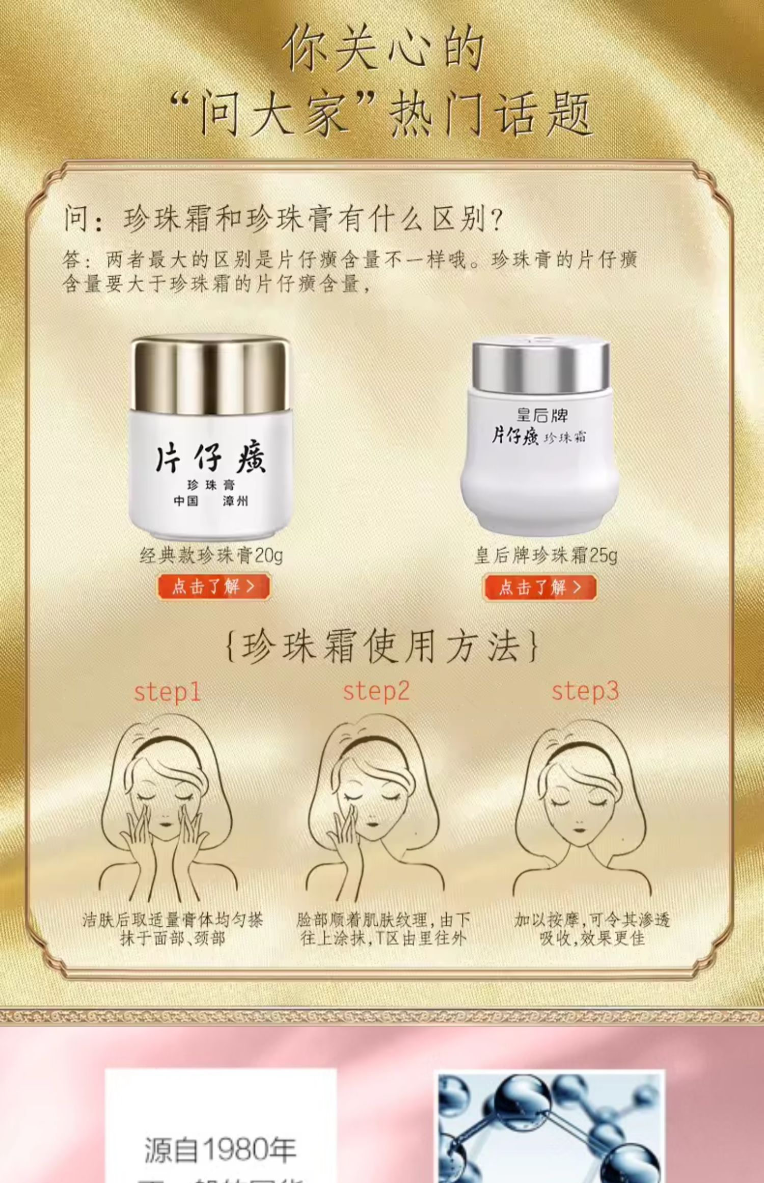 [小滋心选]【活动价¥39.9/3瓶】【3瓶 皇后牌片仔癀珍珠霜】素颜补水保湿国货面霜 25g/瓶