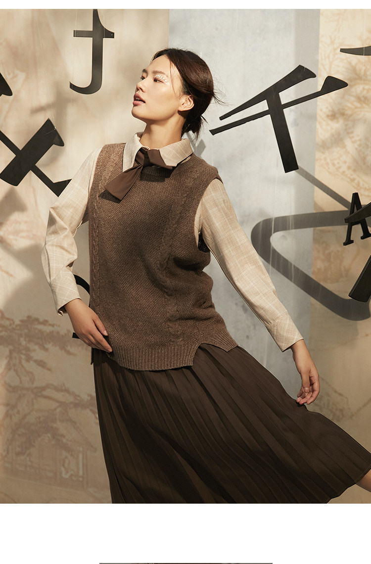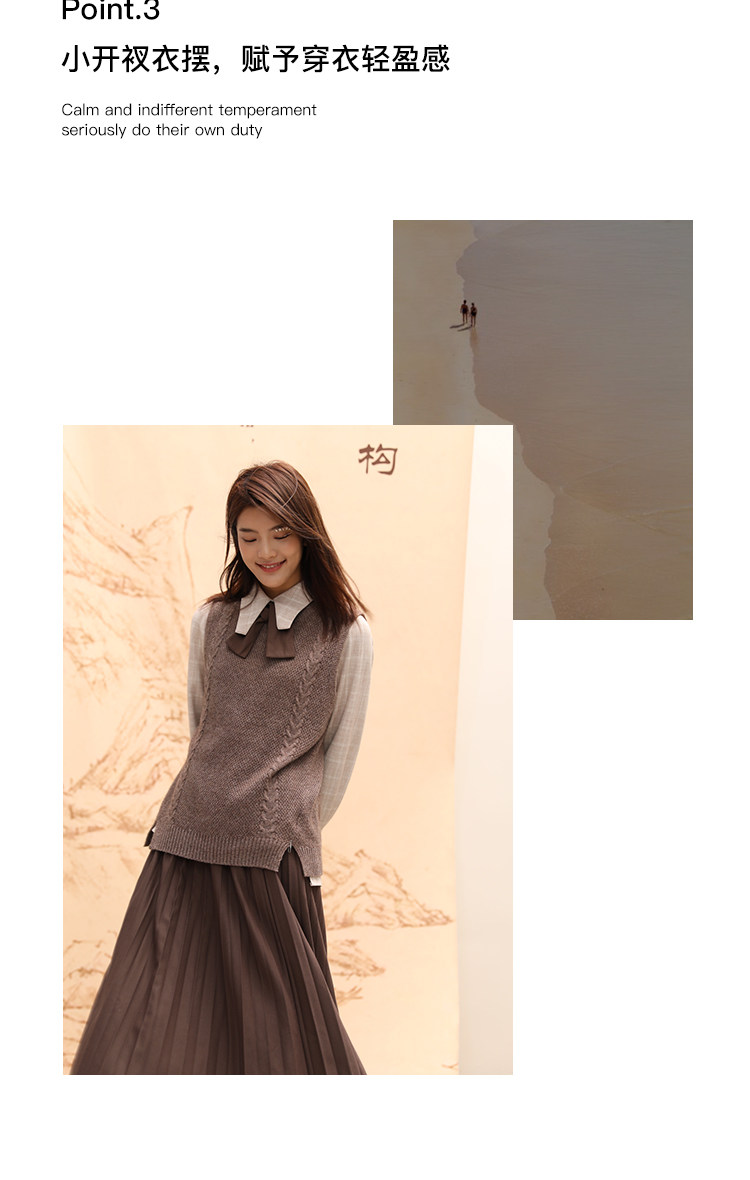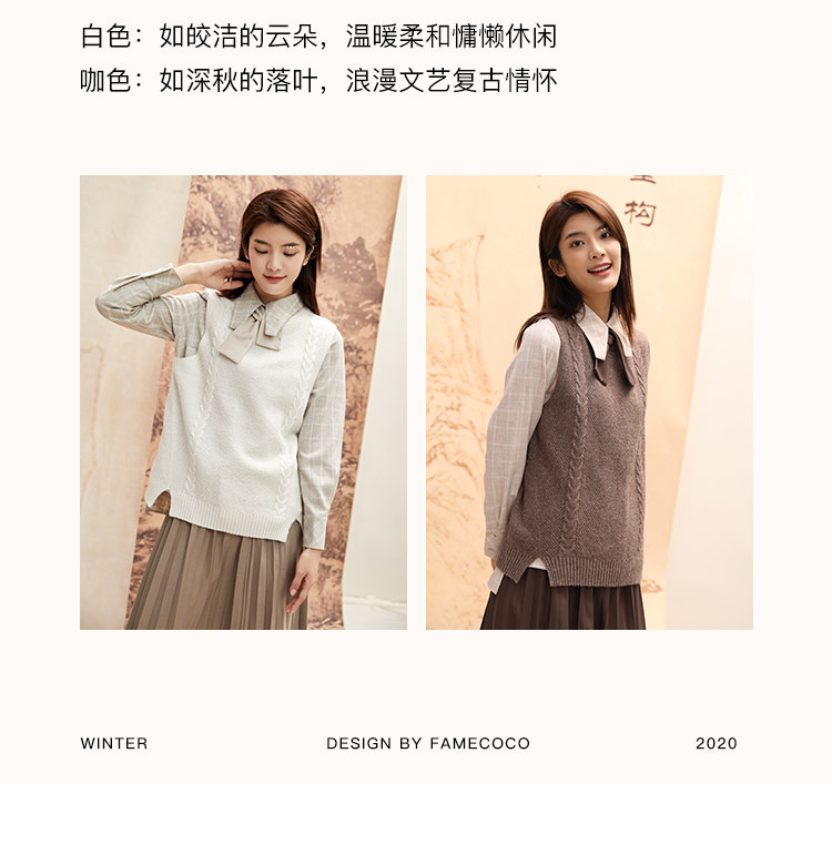 famecoco范可儿马甲秋冬季女羊毛背心外搭针织毛衣马夹F208CA014