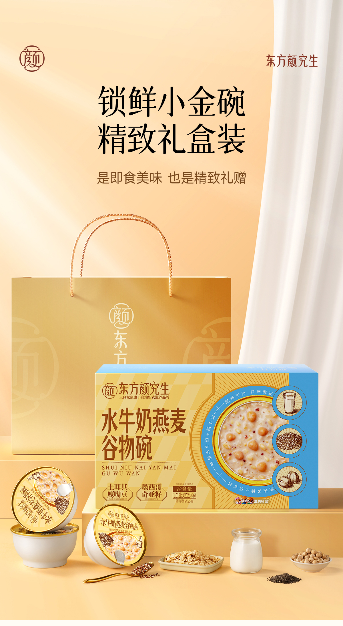 【滋补年礼】三只松鼠 _水牛奶燕麦谷物碗 全球谷物组合鹰嘴豆红白藜麦奇亚籽燕麦