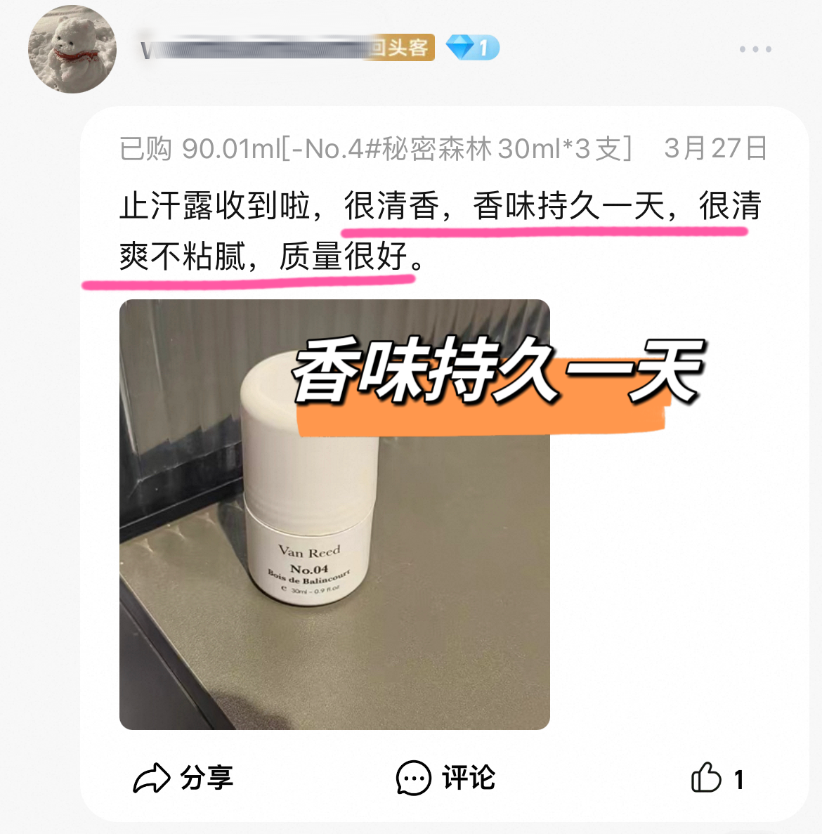 【VAN REED 滚珠香氛止汗露】腋下干爽,温和不刺激,30ml,香味清甜、静谧、温和,不刺鼻🍃✨🍃03伯爵红茶、04秘密森林、09法尼谷