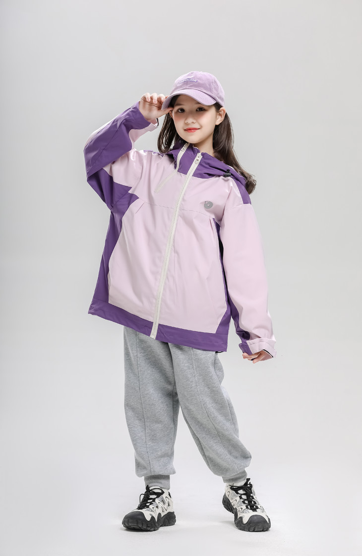 外层是防水 耐磨 抗脏的科技面料❗~ 下雨当雨衣穿、防风防冻、轻便好穿~不仅户外🉑~上学也🉑~ 内里是超级细滑亲肤的生物基面料,对小宝贝的皮肤非常友好,💕好看又洋气~
