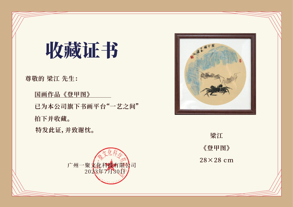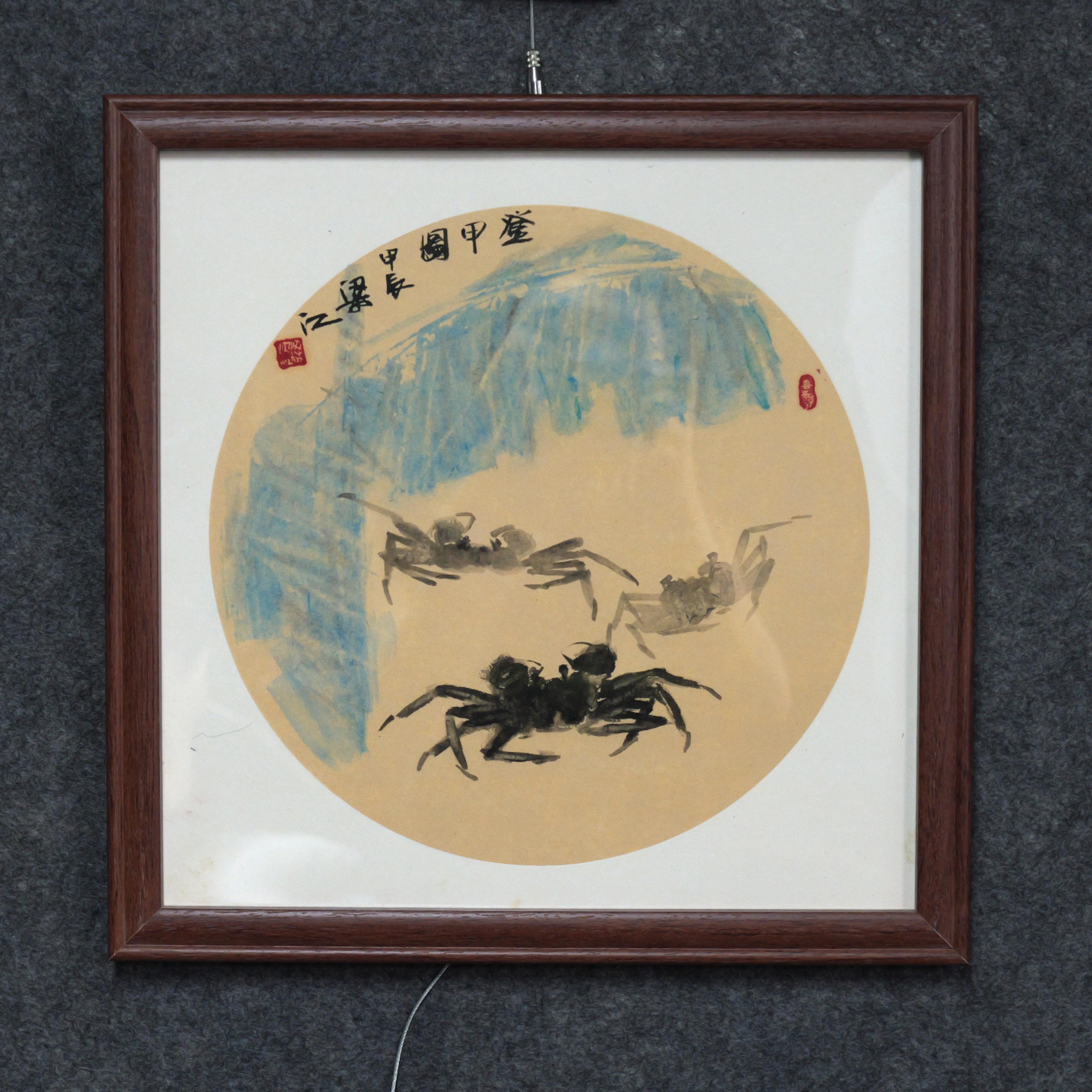 梁江《登甲图》国画原作28CM*28CM 手绘宣纸作品含框