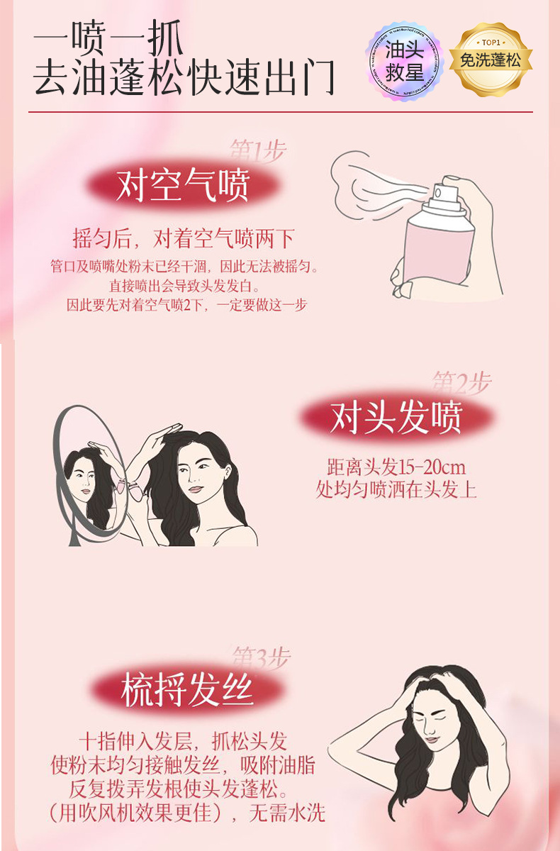 【油头秒变高颅顶!出门快人一步】头发去油味干爽免洗喷雾 不涩不白蓬松高颅顶神器干发喷雾200ML。ry