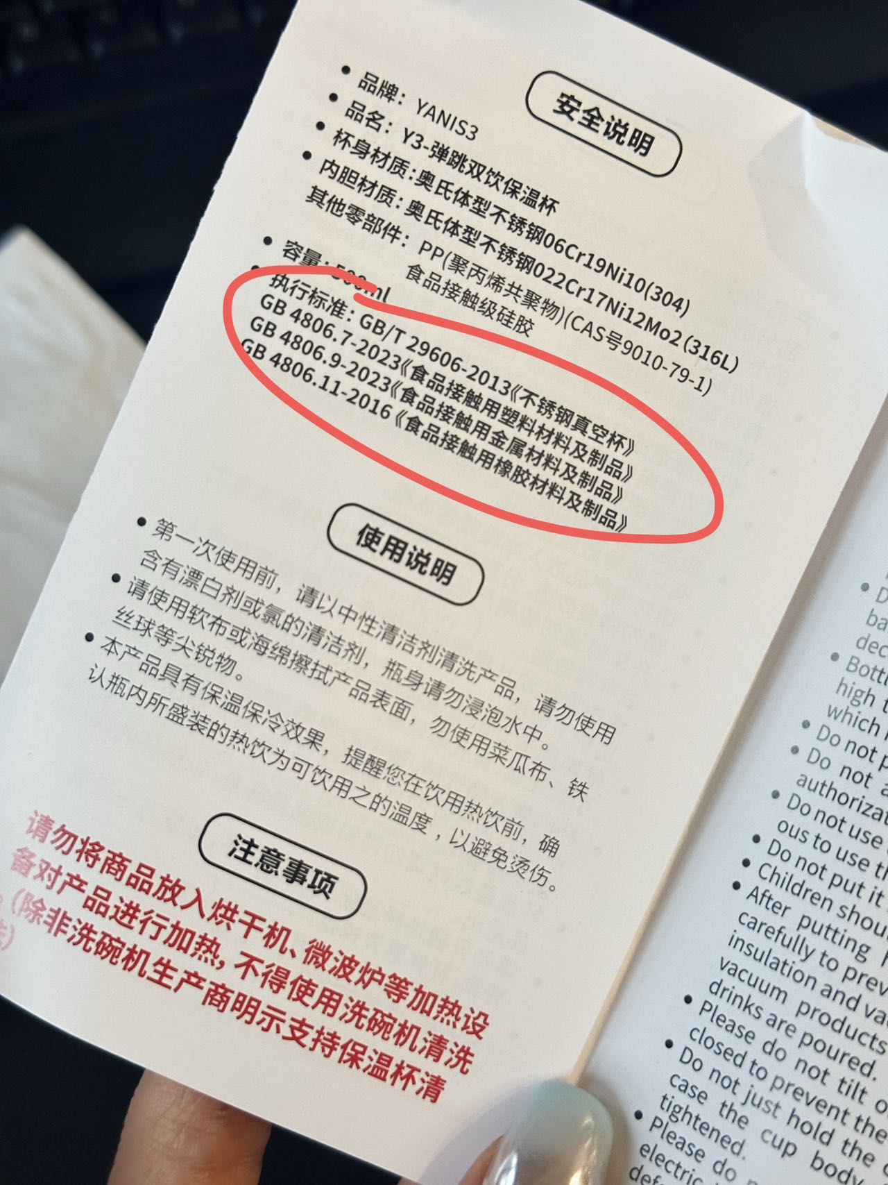 【产品材质】杯盖pp材质、杯身304、内胆316