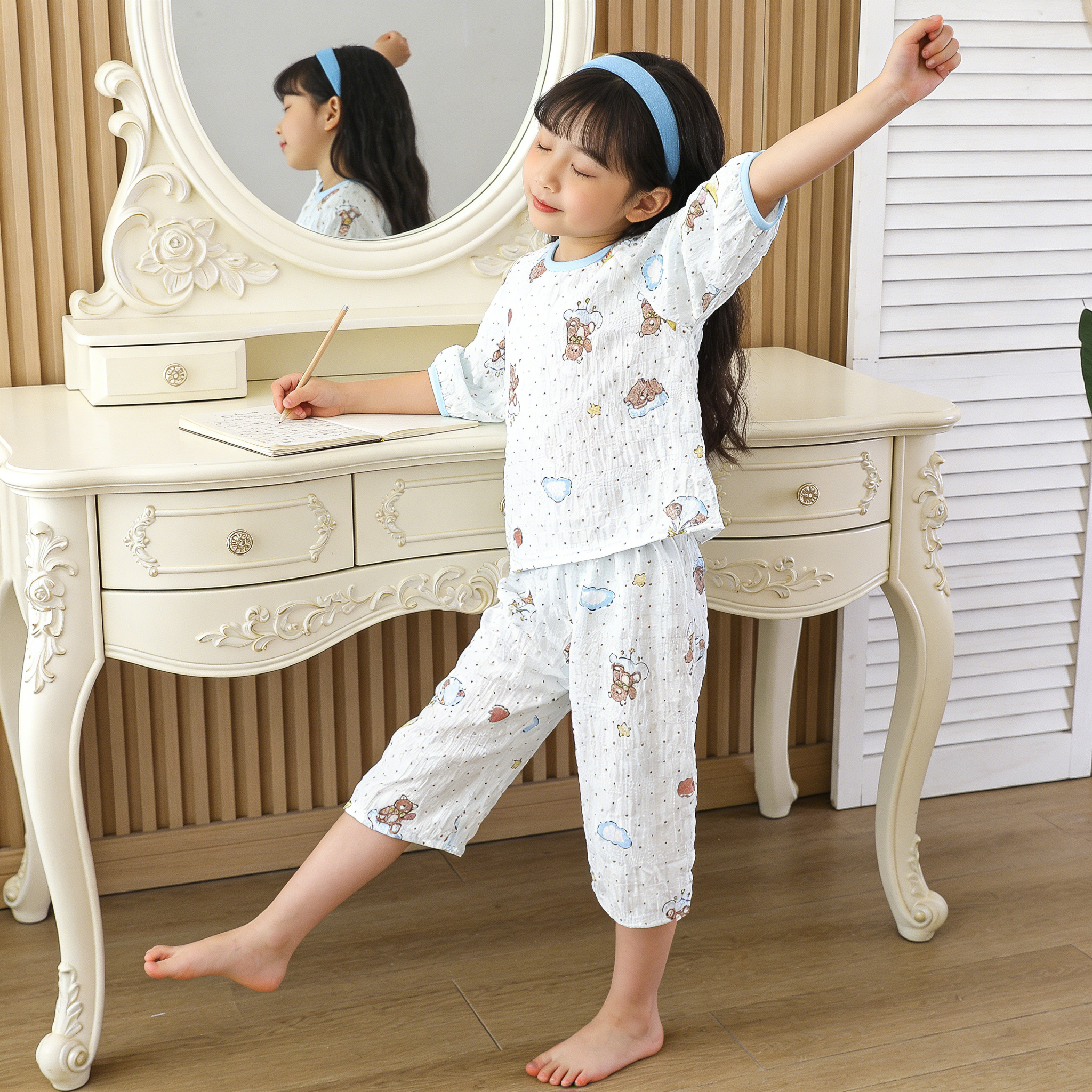 空调房吸汗透气不粘身~