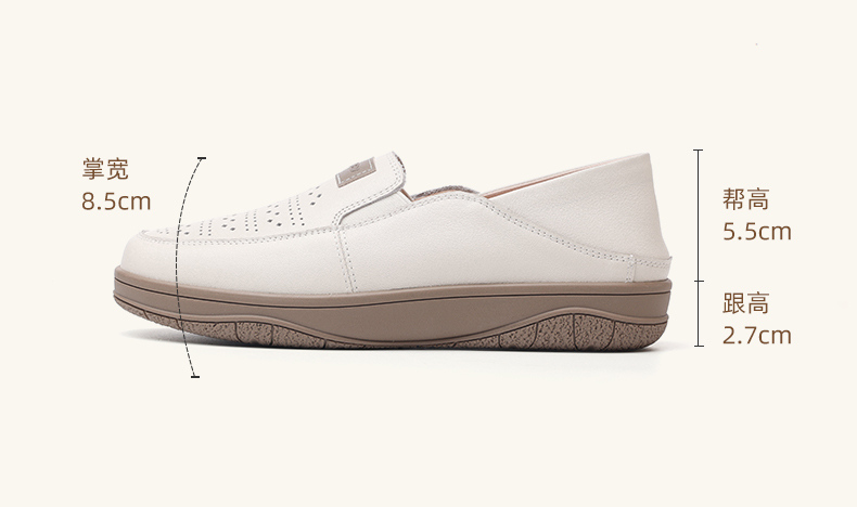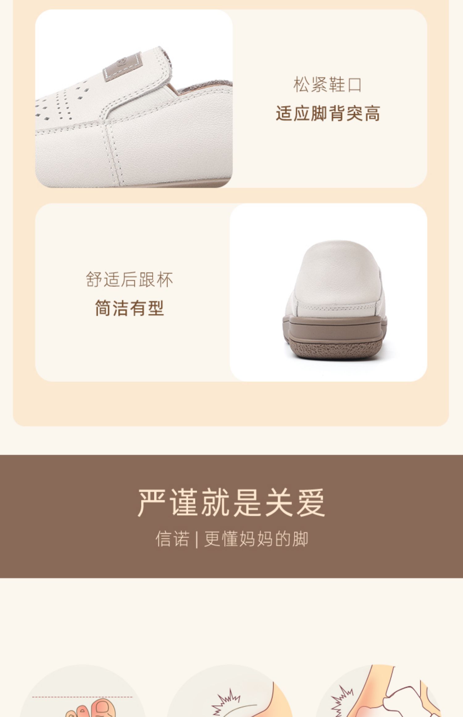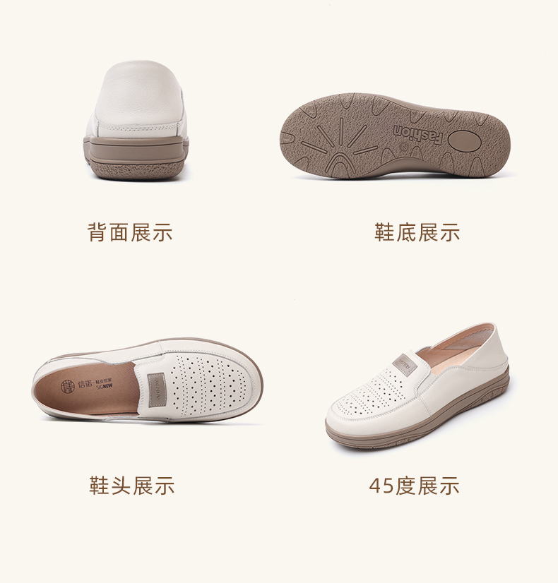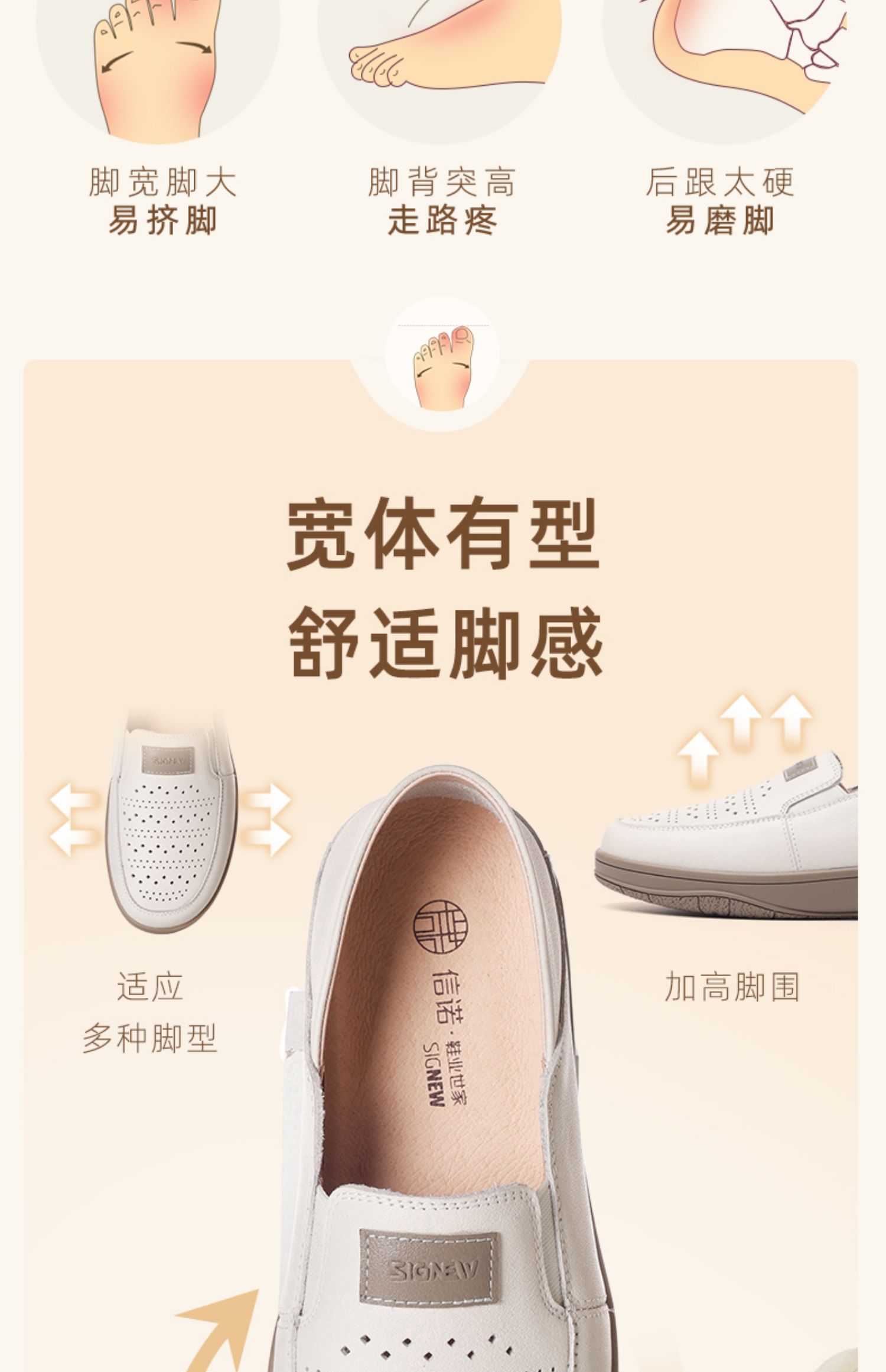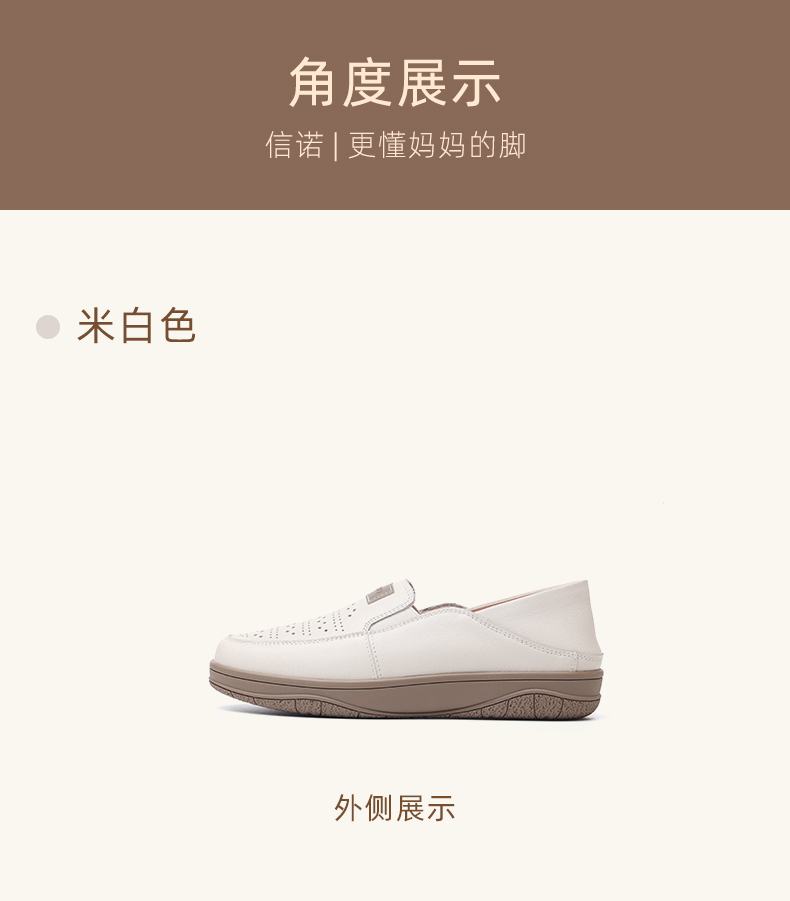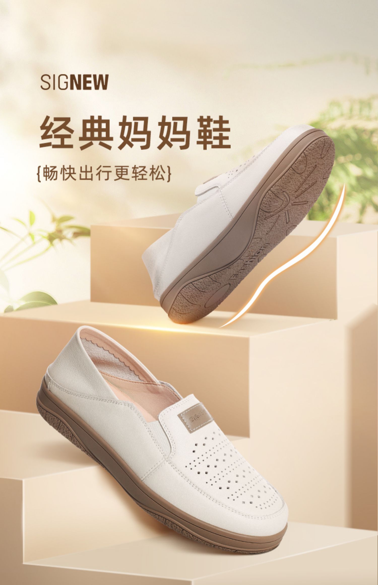 信诺真皮镂空透气单鞋女2025春季新款软底妈妈鞋小白鞋一脚蹬皮鞋5C3066-19