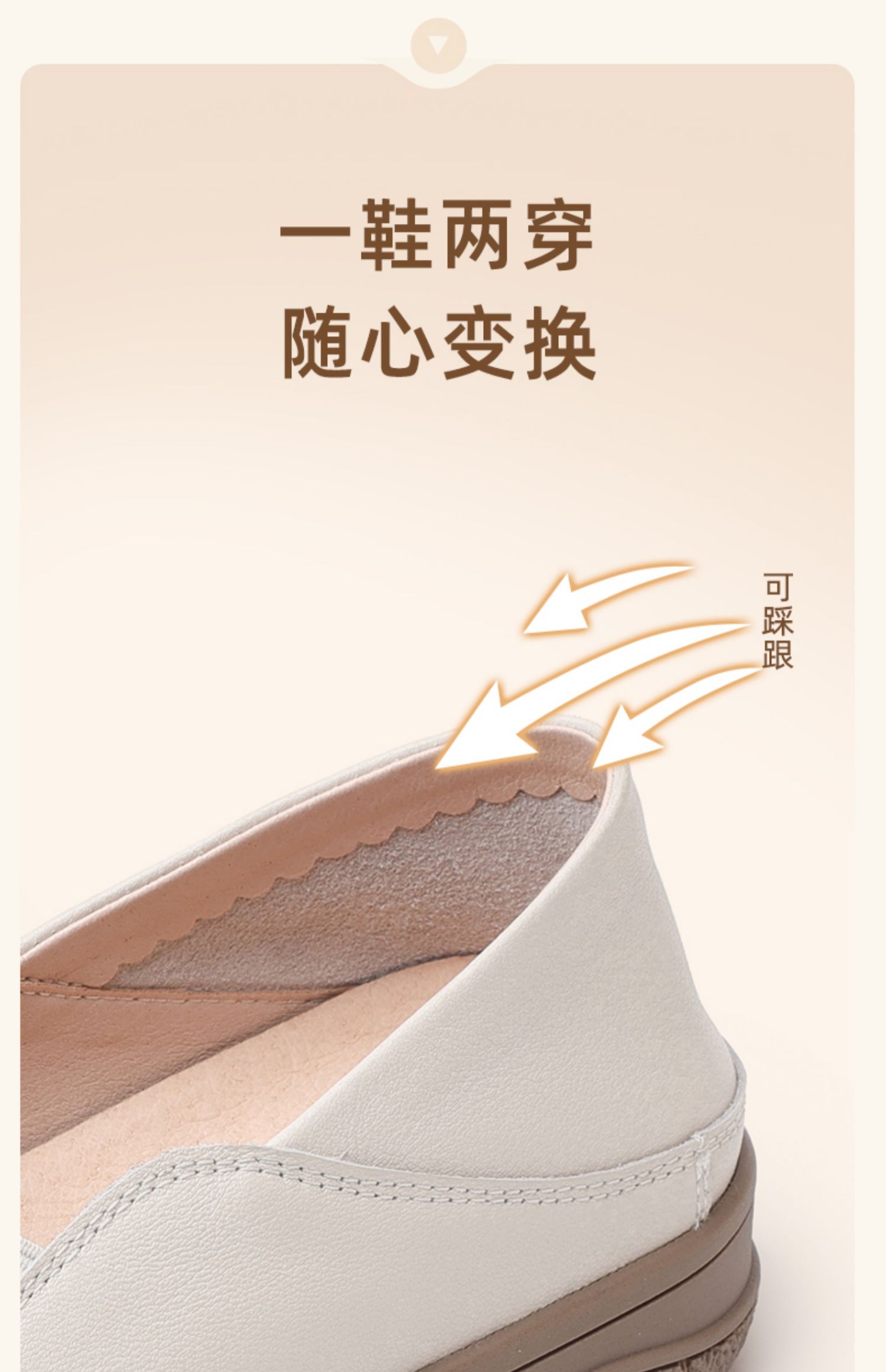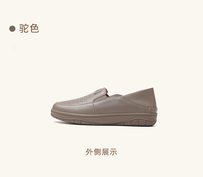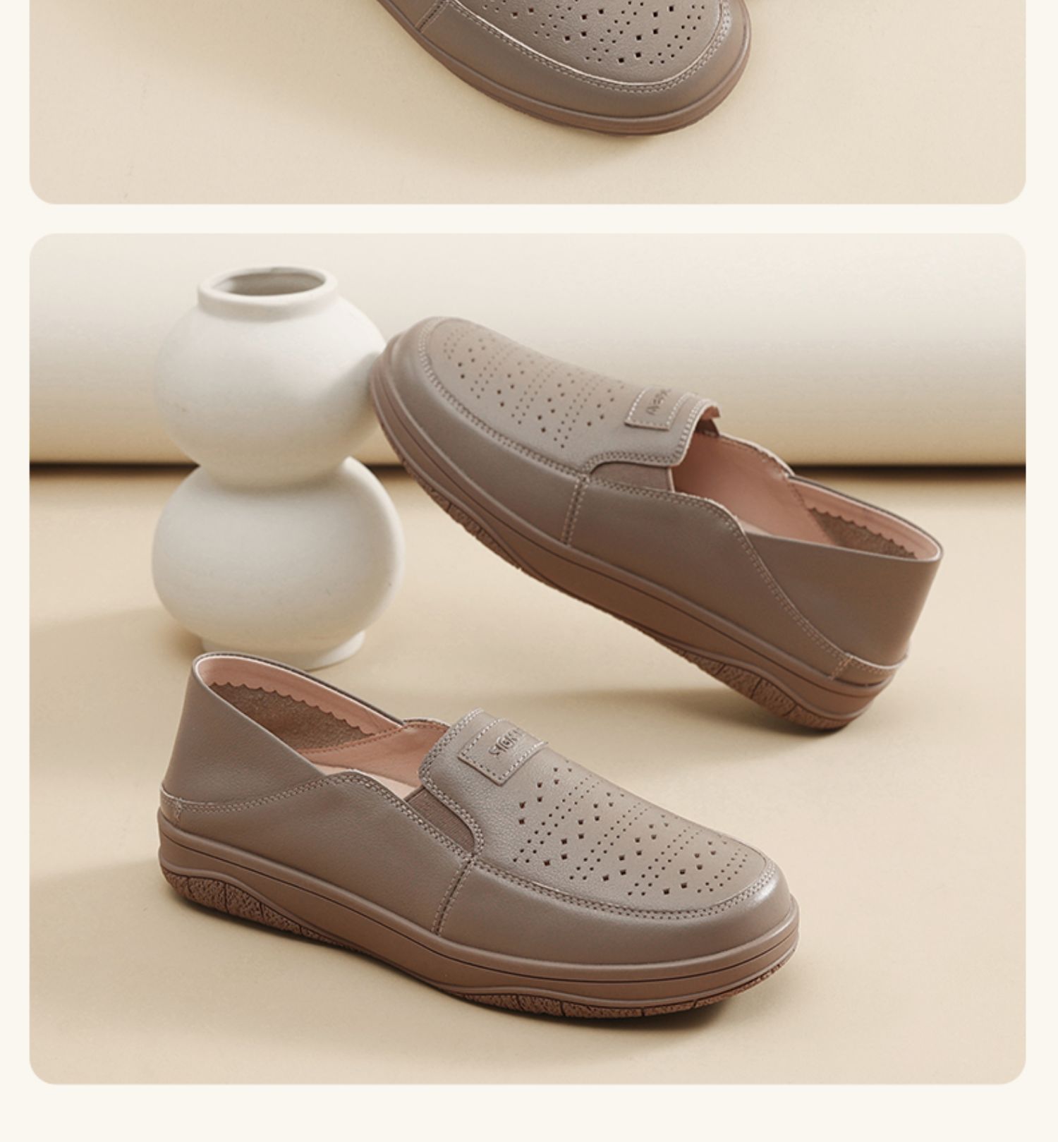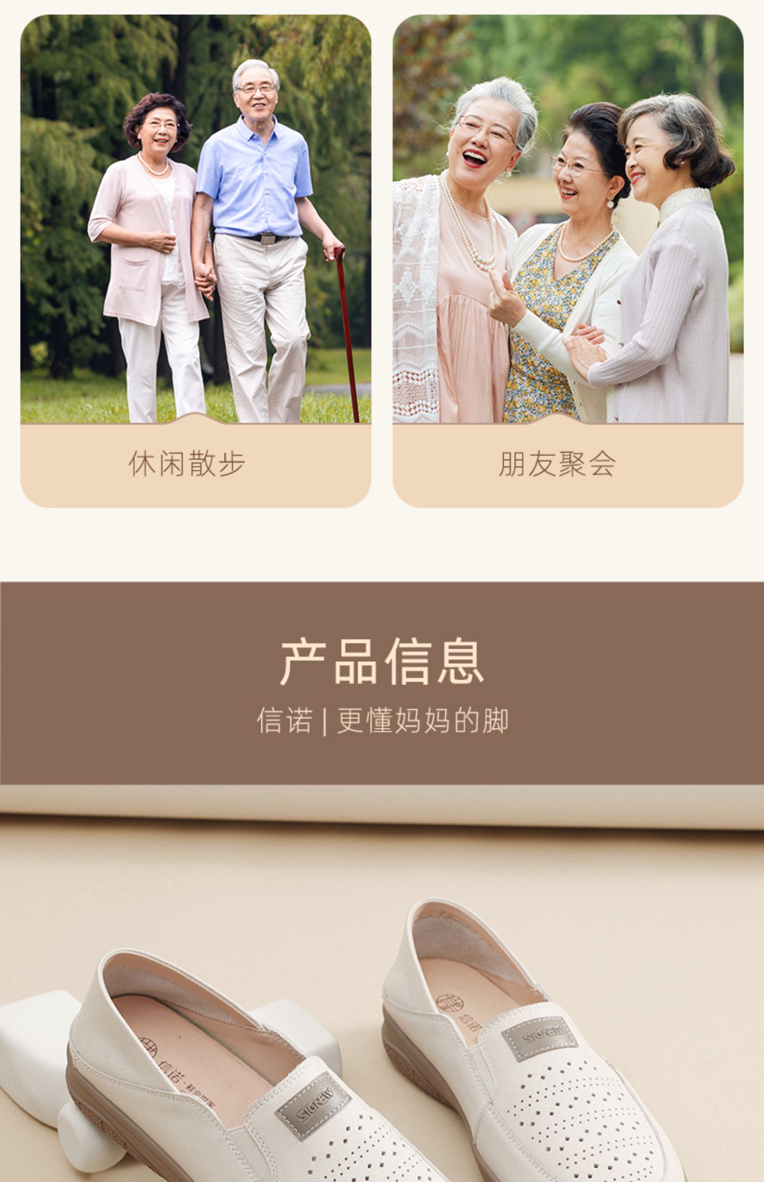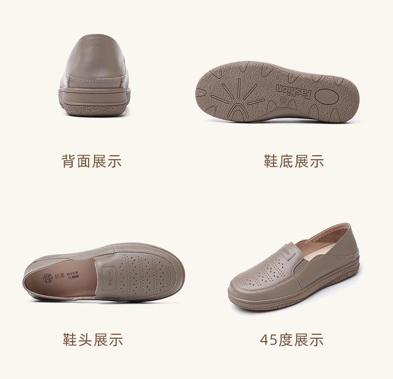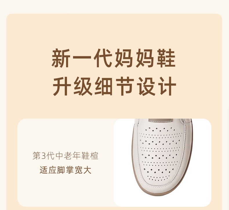 信诺真皮镂空透气单鞋女2025春季新款软底妈妈鞋小白鞋一脚蹬皮鞋5C3066-19
