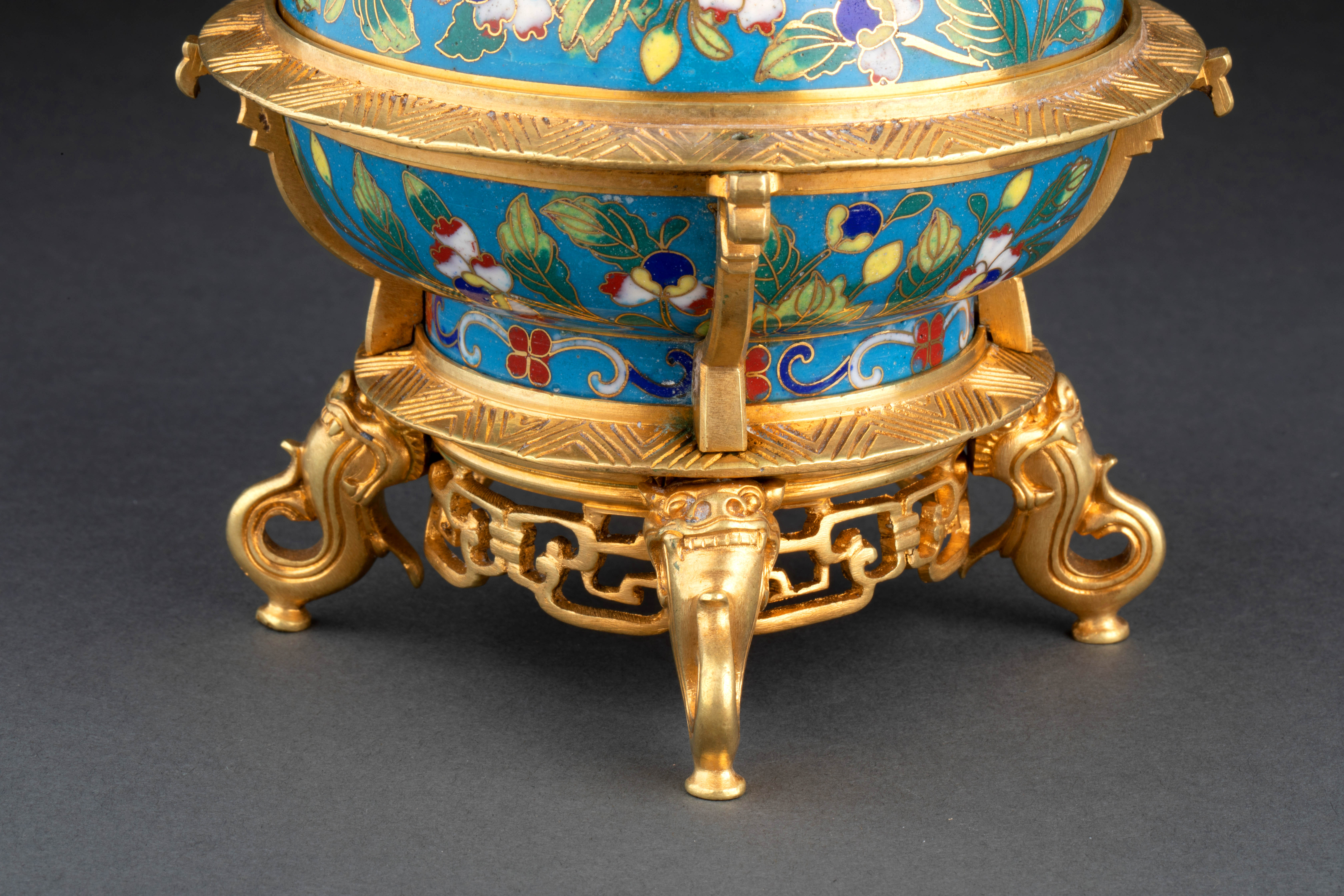 独角鹿西洋古董摆件1880年代中国出品铜鎏金景泰蓝珍宝盒
