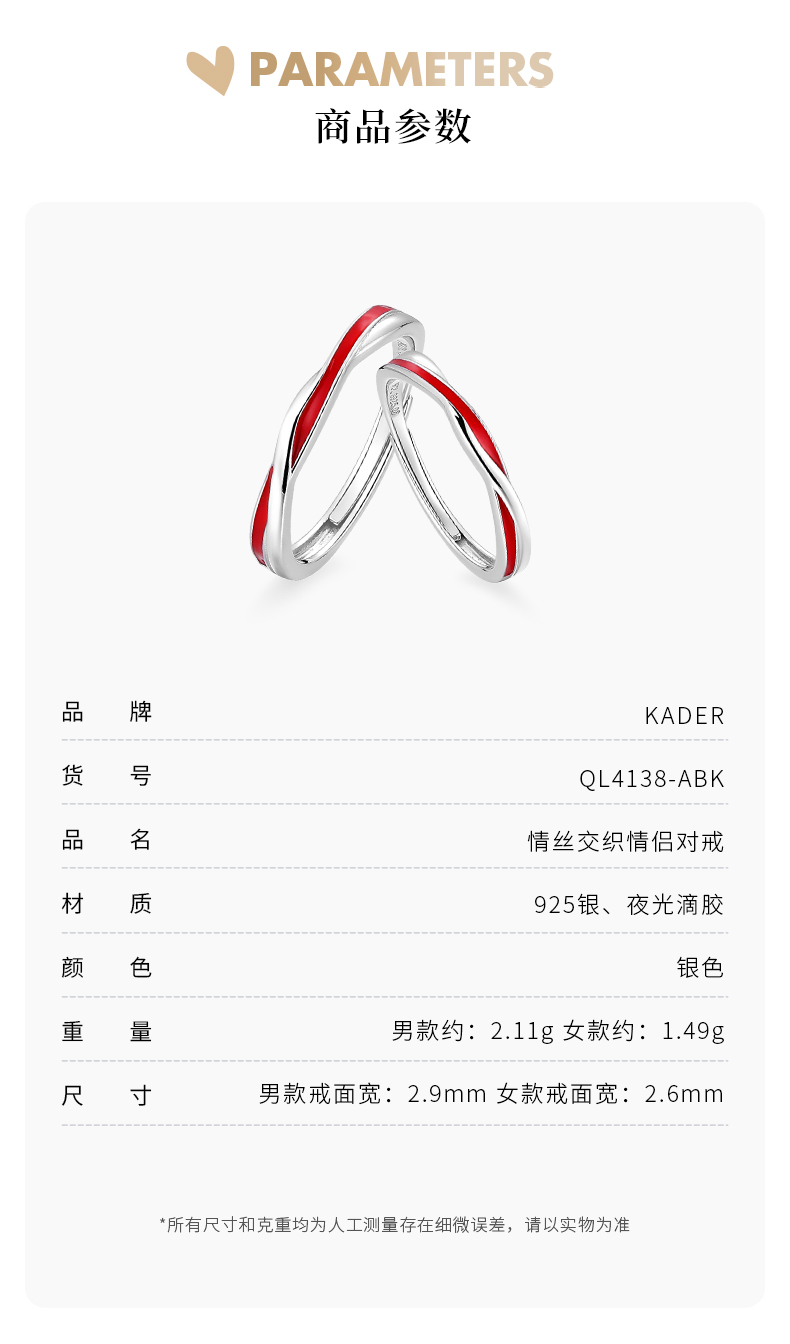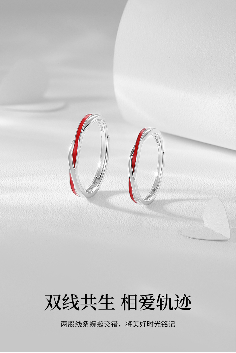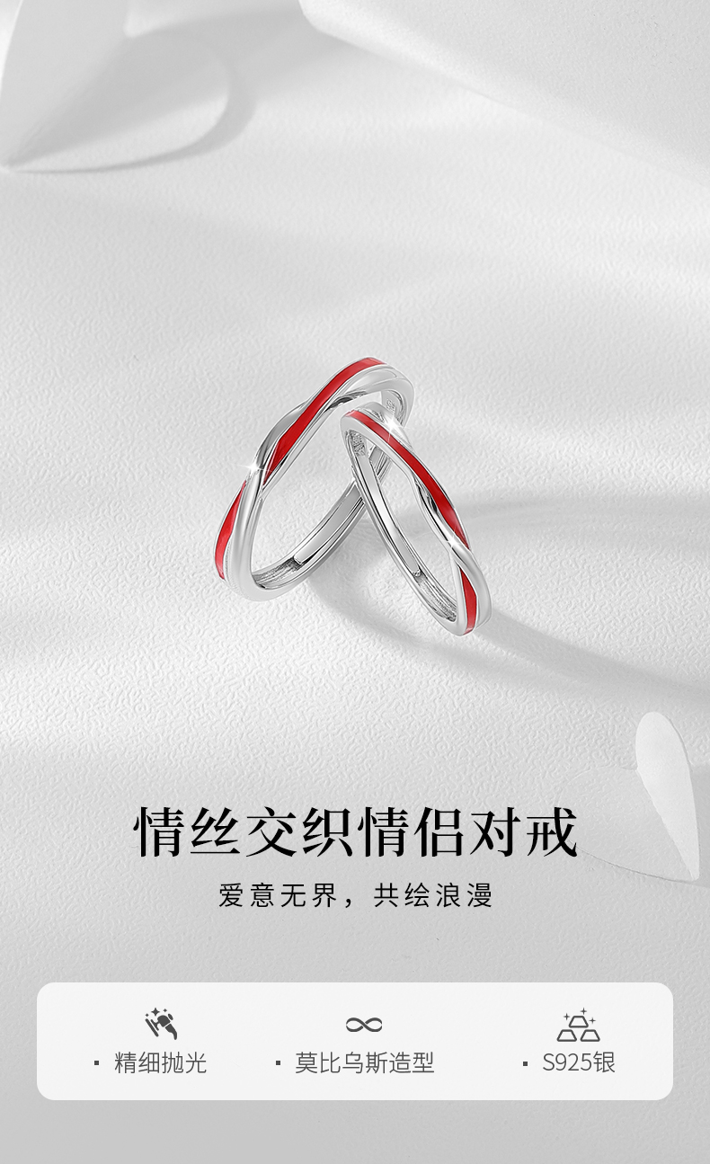 【夜光&挚爱一生】卡蒂罗KADER 情丝交织情侣对戒 莫比乌斯轻奢小众素圈爱意交织爱无止境质感百搭可调节 简约浪漫钟爱久久恋爱频率