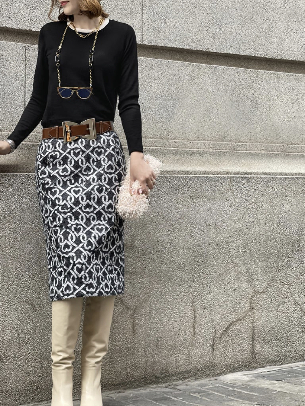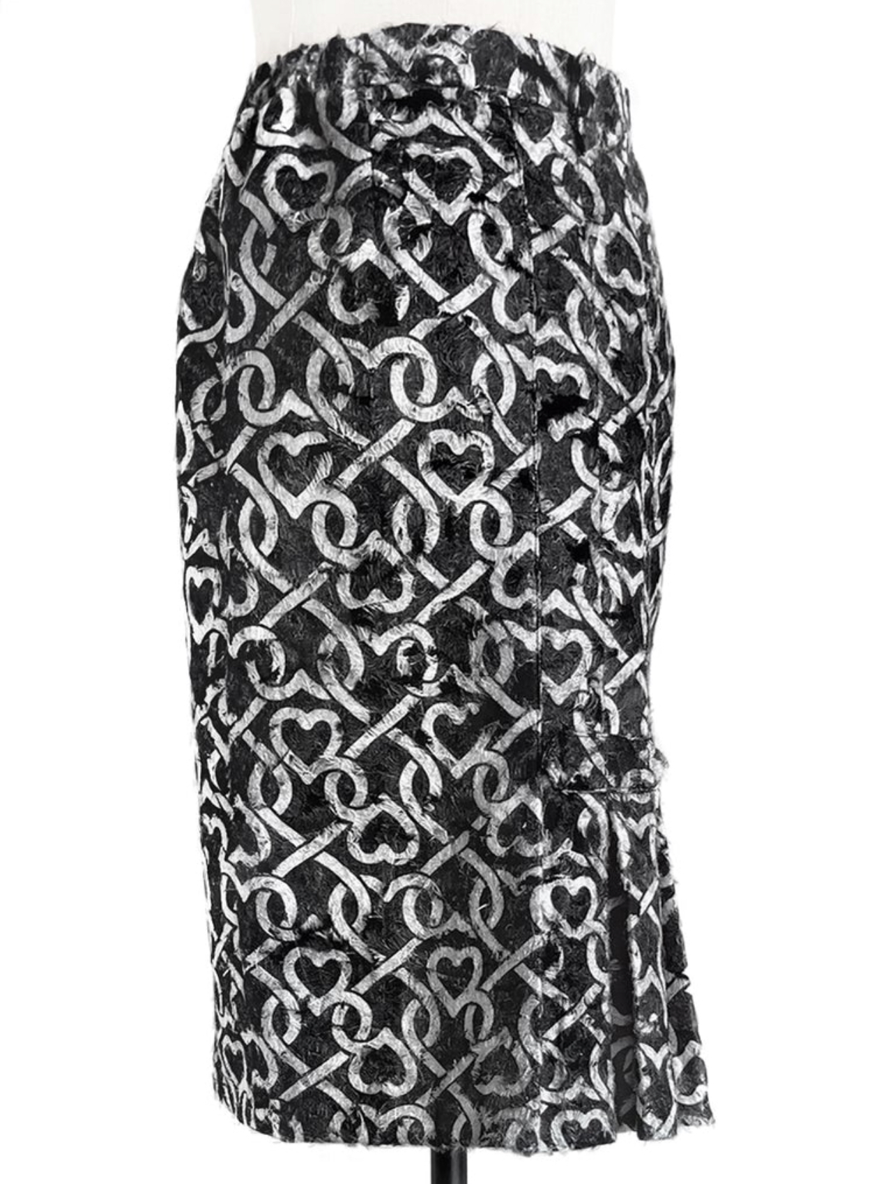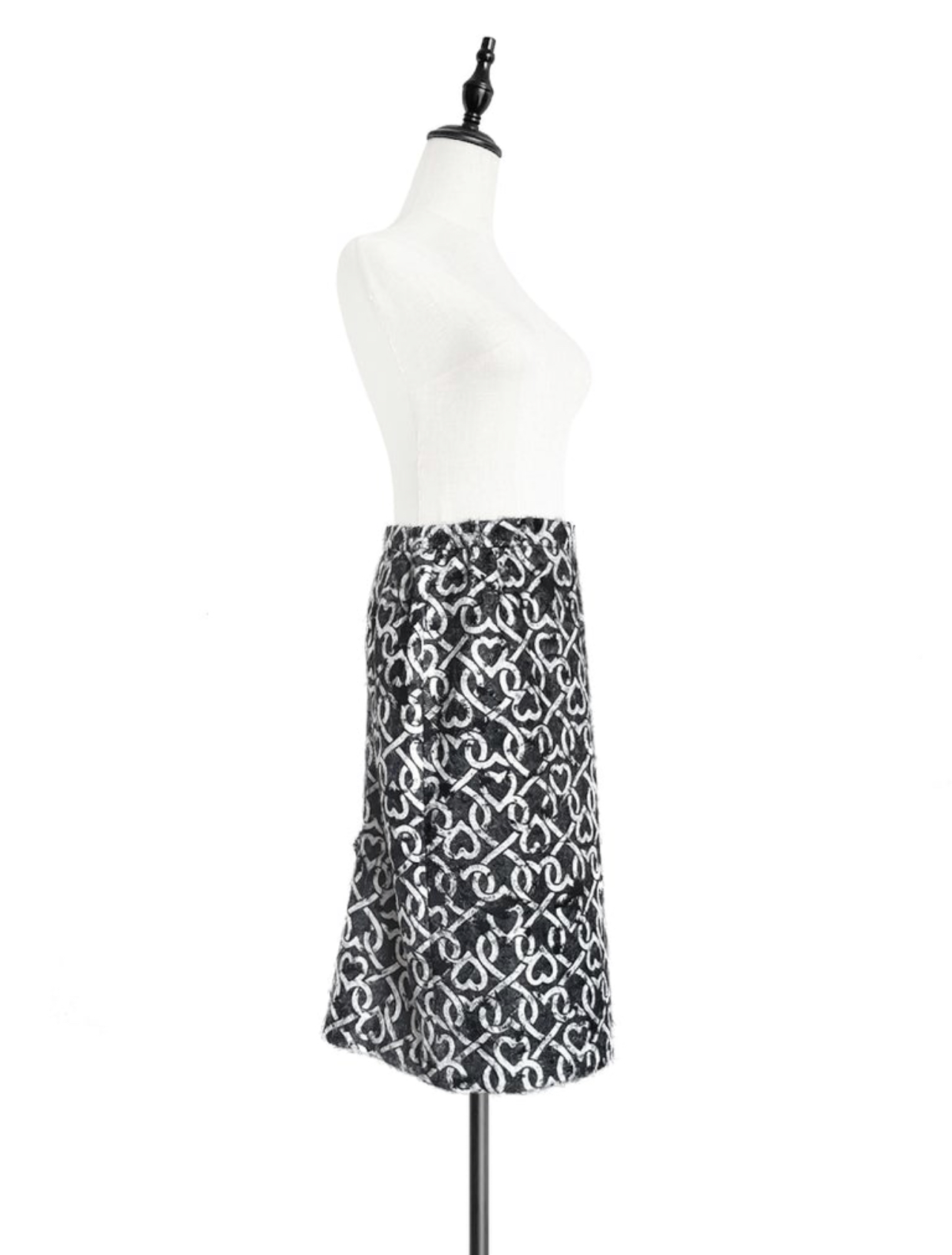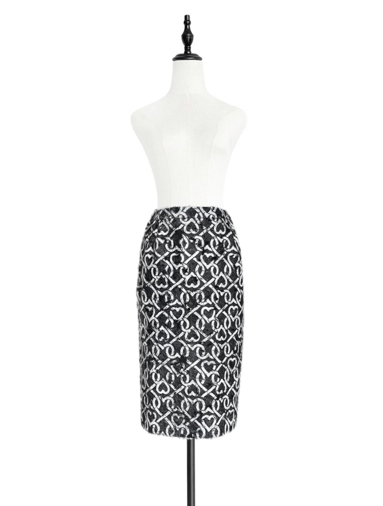 TYNVIE 后褶皱左右松紧腰半身裙-心形印花