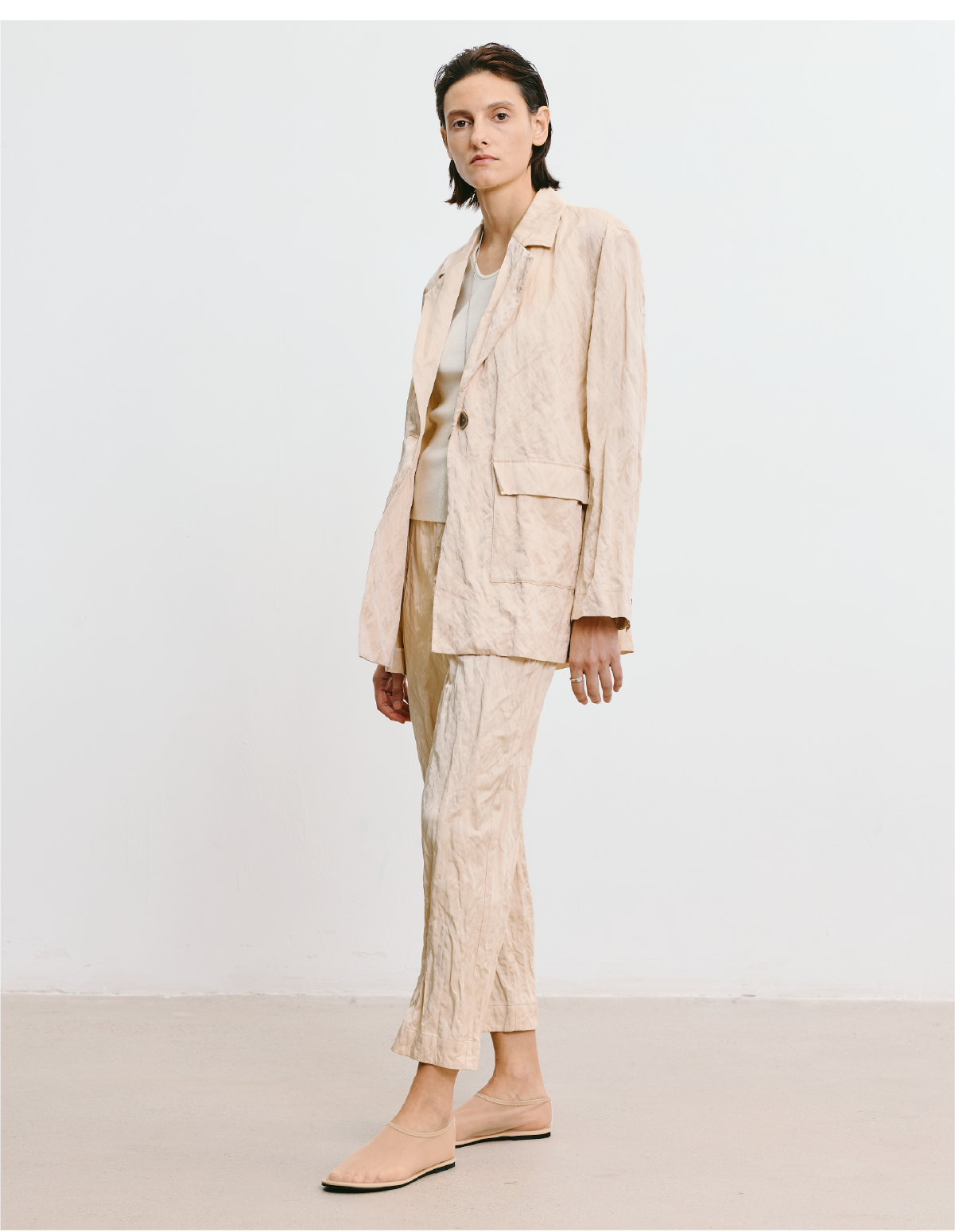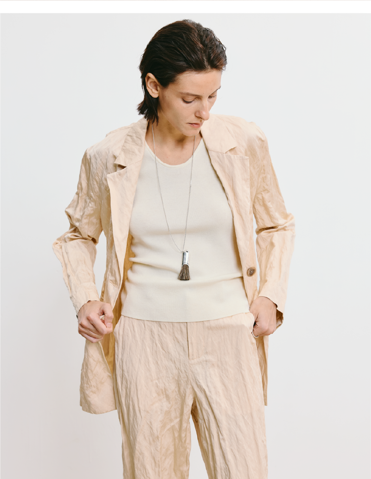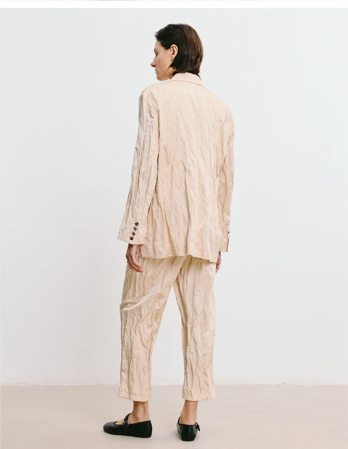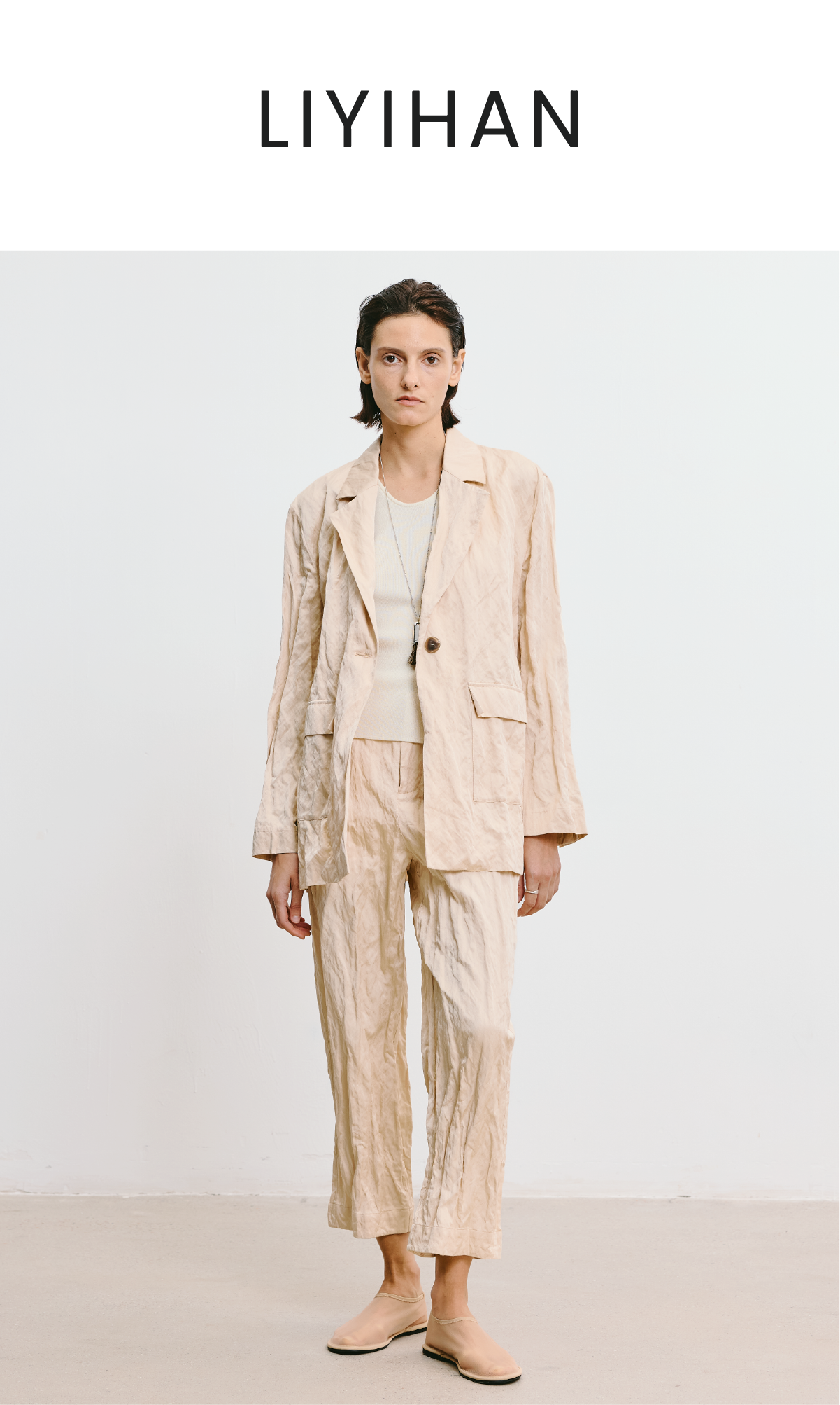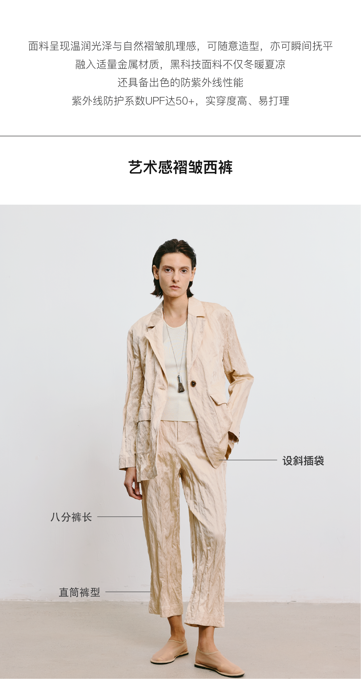 LIYIHAN 2025秋季新款褶皱西装裤女杏色设计感小众气质九分休闲裤