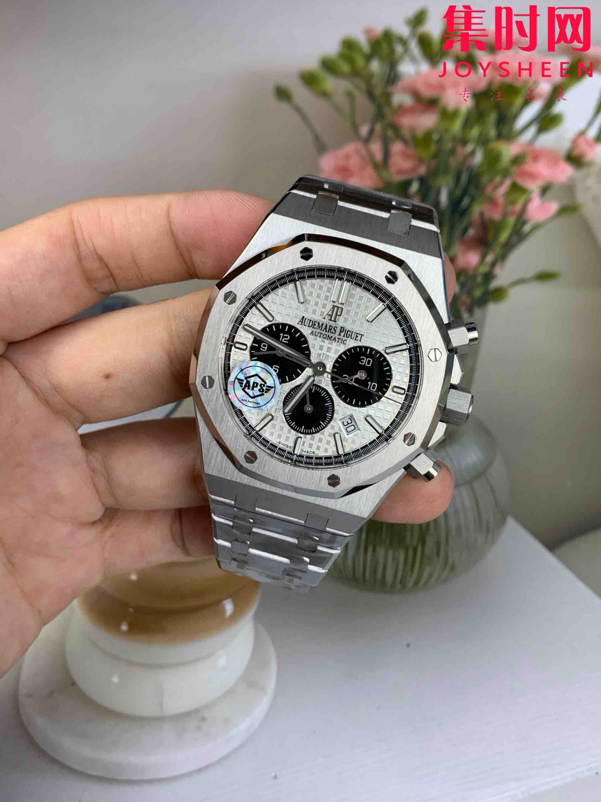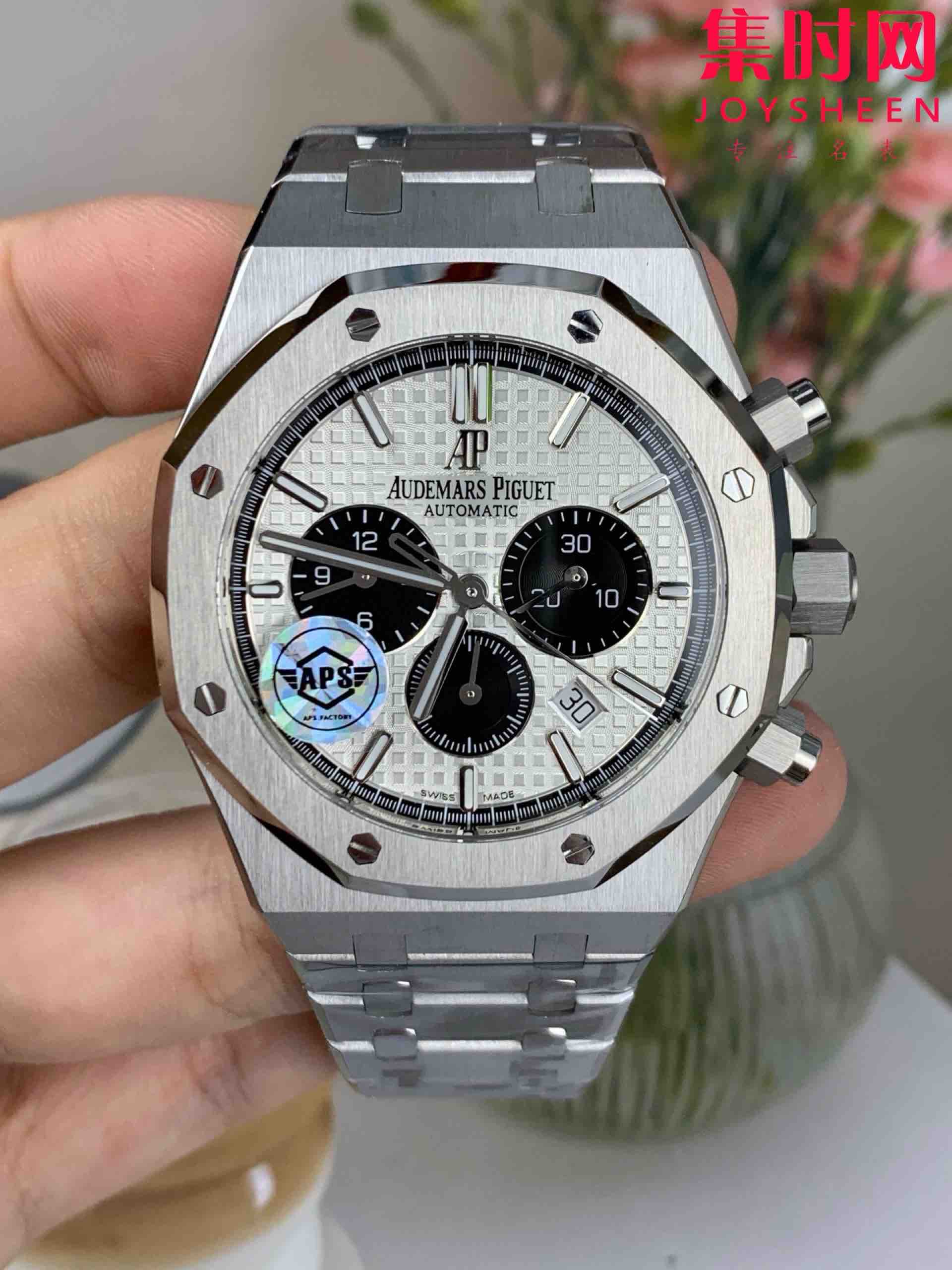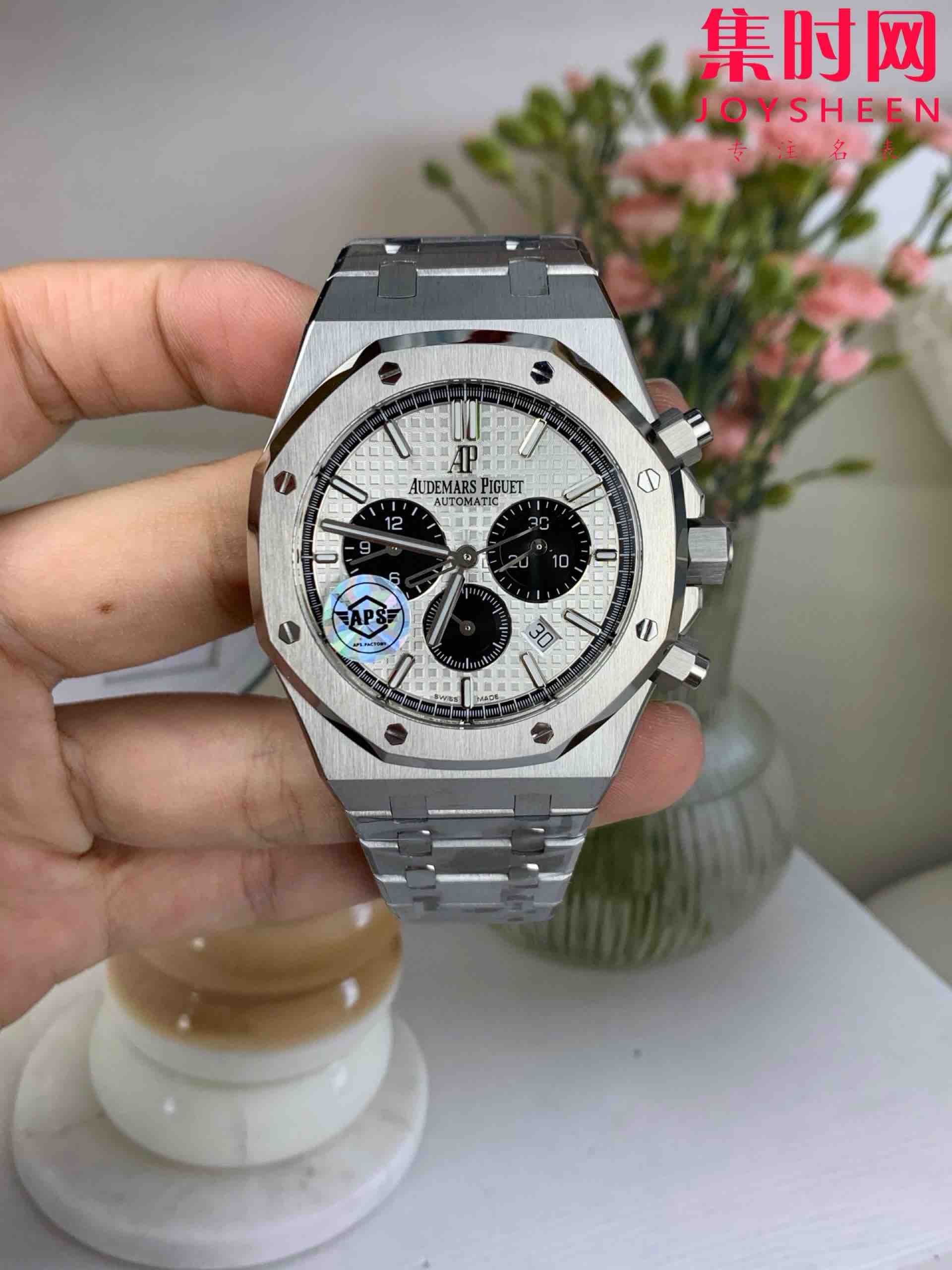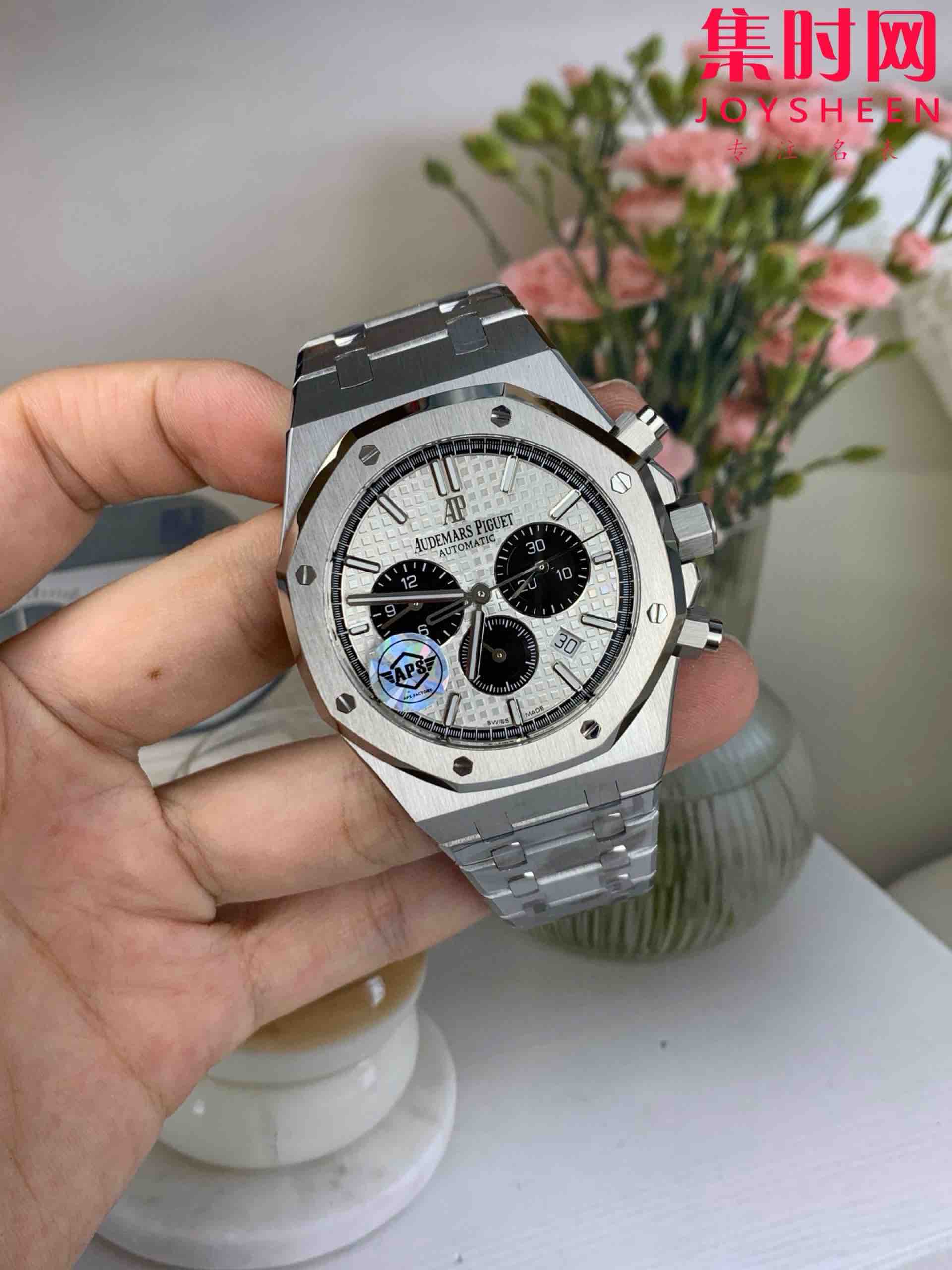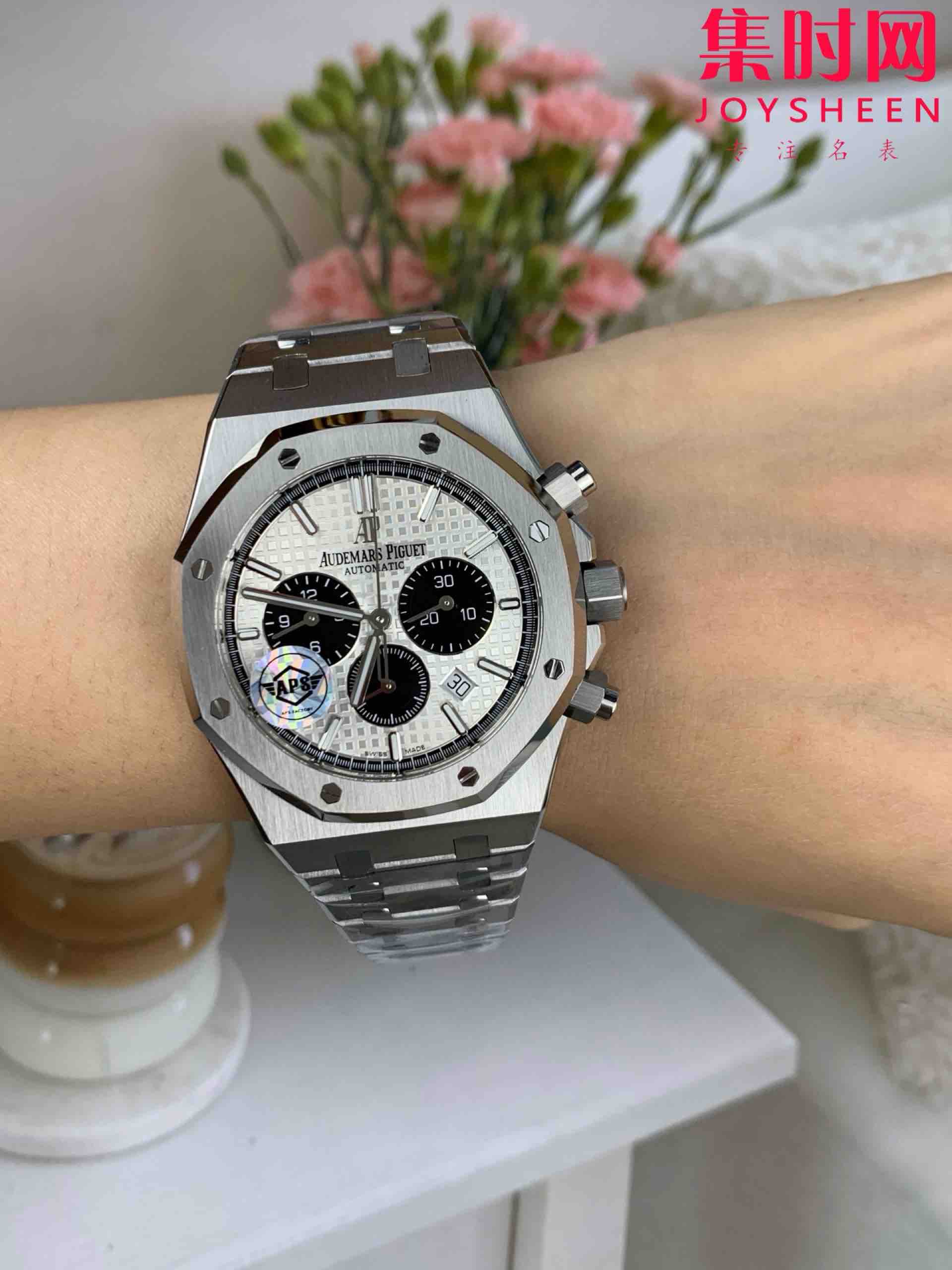 APS新品爱彼皇家橡树系列26331 熊猫盘 男士腕表 自动上链计时码表,以标志性八角形表圈与“Tapisserie”格纹表盘诠释经典设计,搭载丹东一体定制机芯
