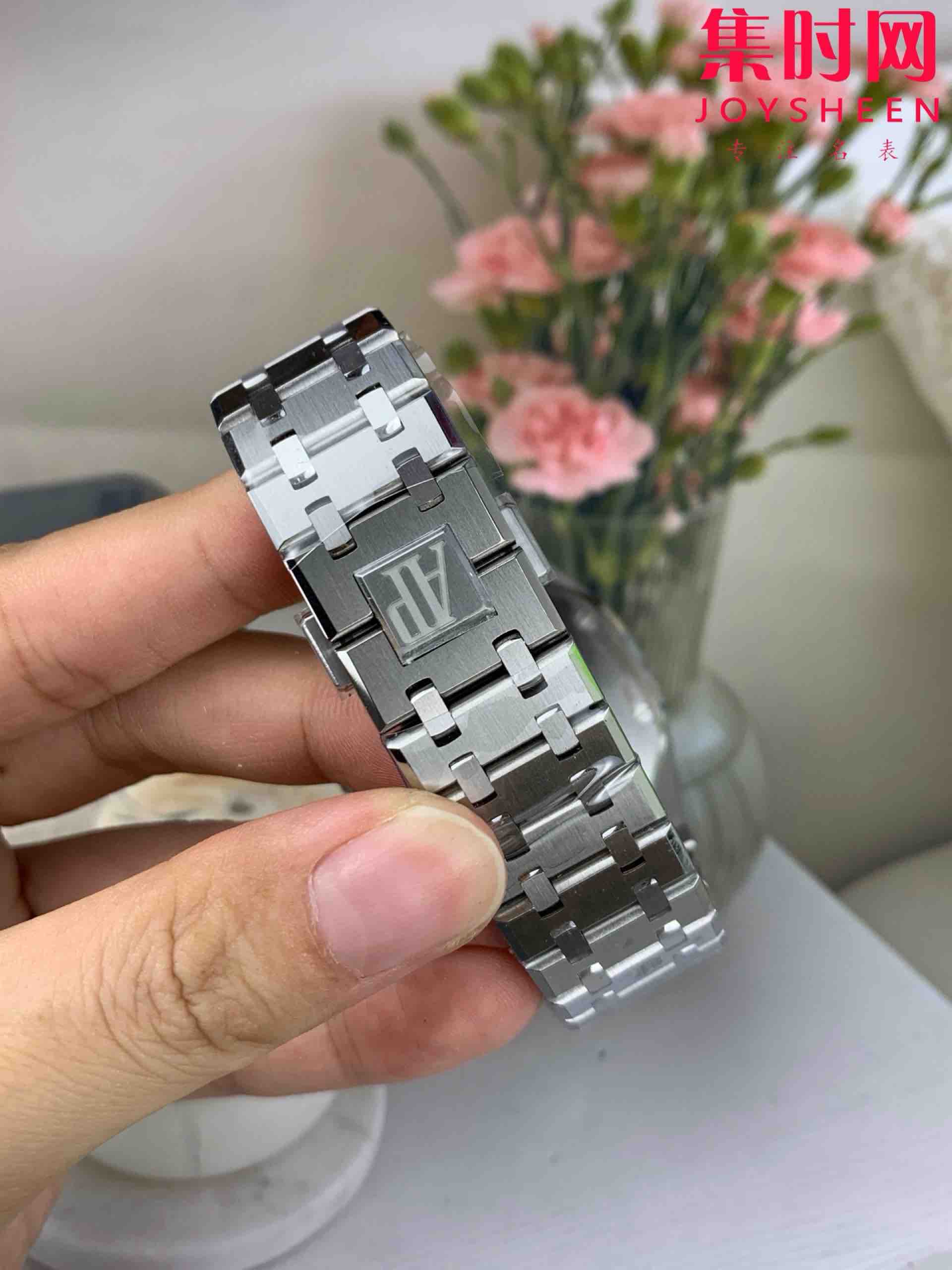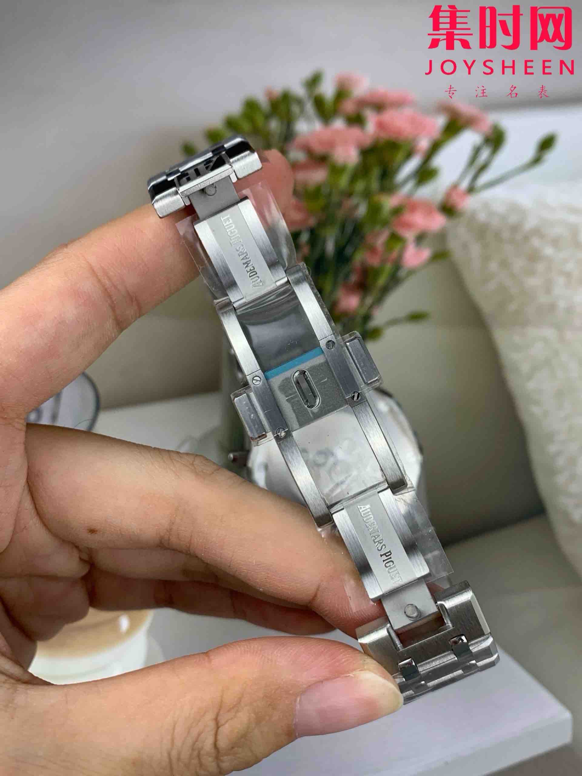 3️⃣aps26331正品开模表带精钢表带经抛光和拉丝交替处理,链节结构符合人体工学,佩戴贴合舒适。一体化设计与表壳无缝衔接,兼顾坚固与优雅,突显皇家橡树标志性美学。