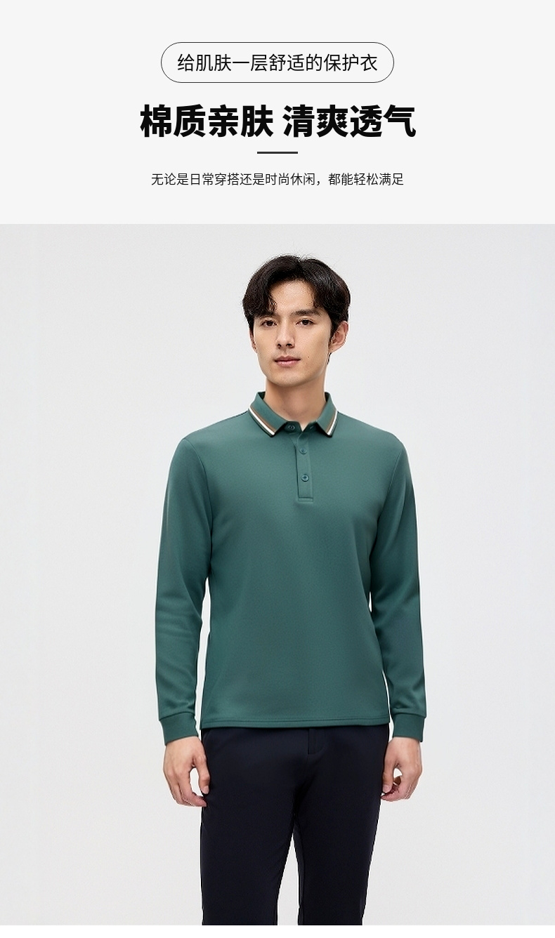 【含桑蚕丝】圣得西翻领POLO衫2025秋季新款商务风纯色长袖T恤男