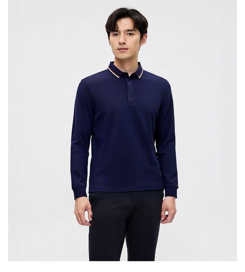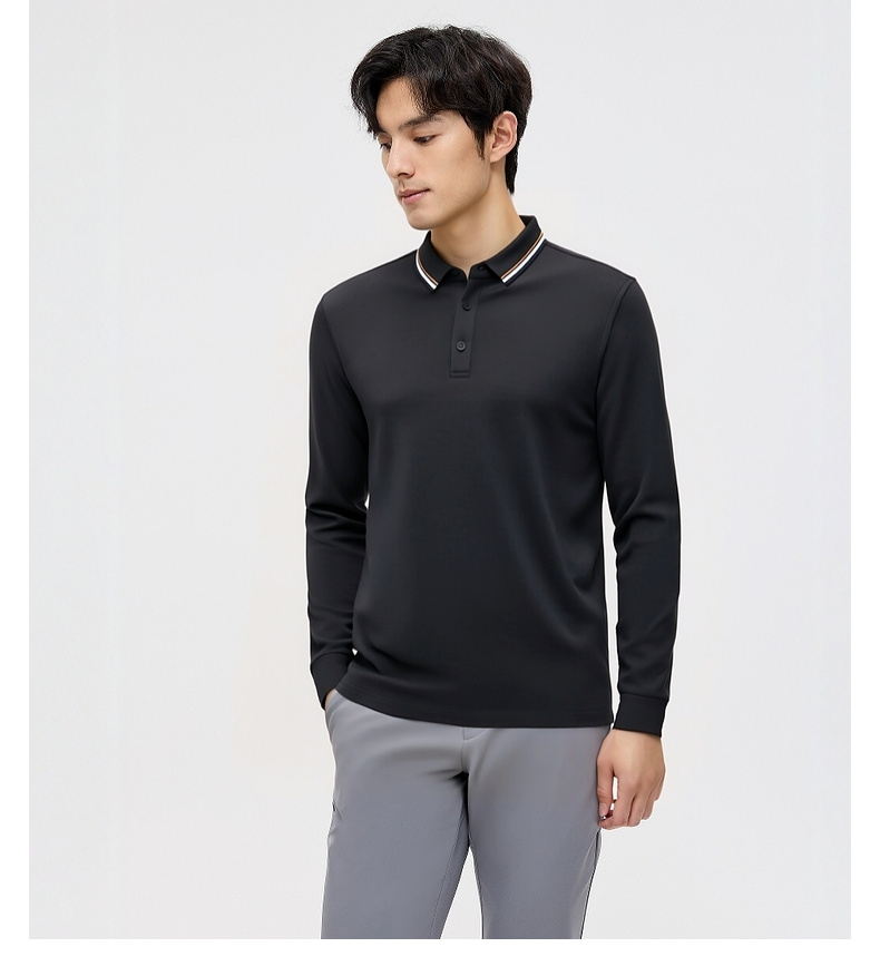 圣得西男装2025春季新款男士简约通勤百搭长袖休闲翻领纯色POLO衫2512945062