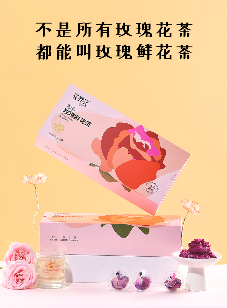 - 店铺产品主要包括冻干玫瑰花冠茶、低温烘干玫瑰花冠茶、玫瑰鲜花液、玫瑰花瓣、玫瑰纯露、玫瑰食品、玫瑰化妆品等。