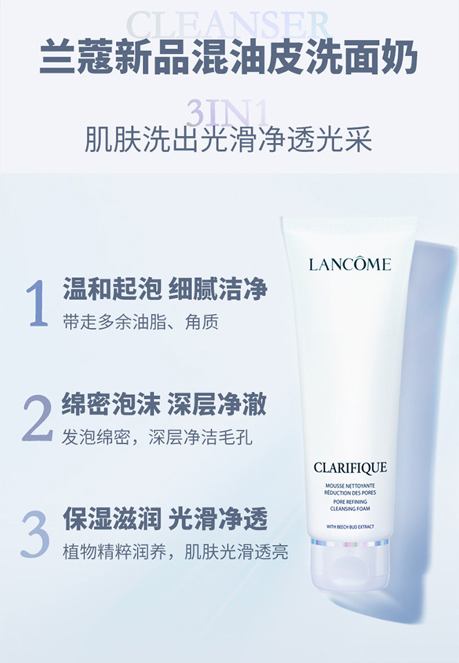 LANCOME/兰蔻净澈焕肤洁面乳 极光洁面乳 混油皮洗面奶 125ml