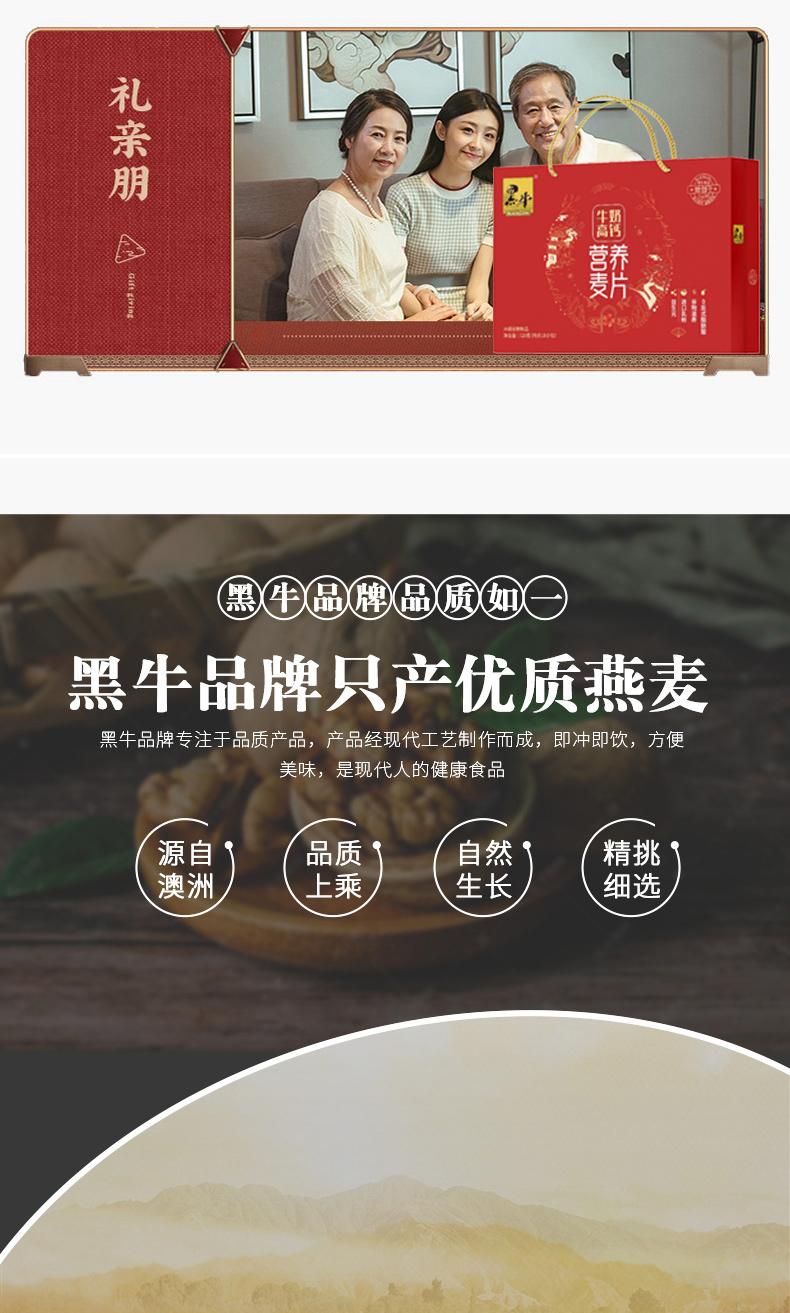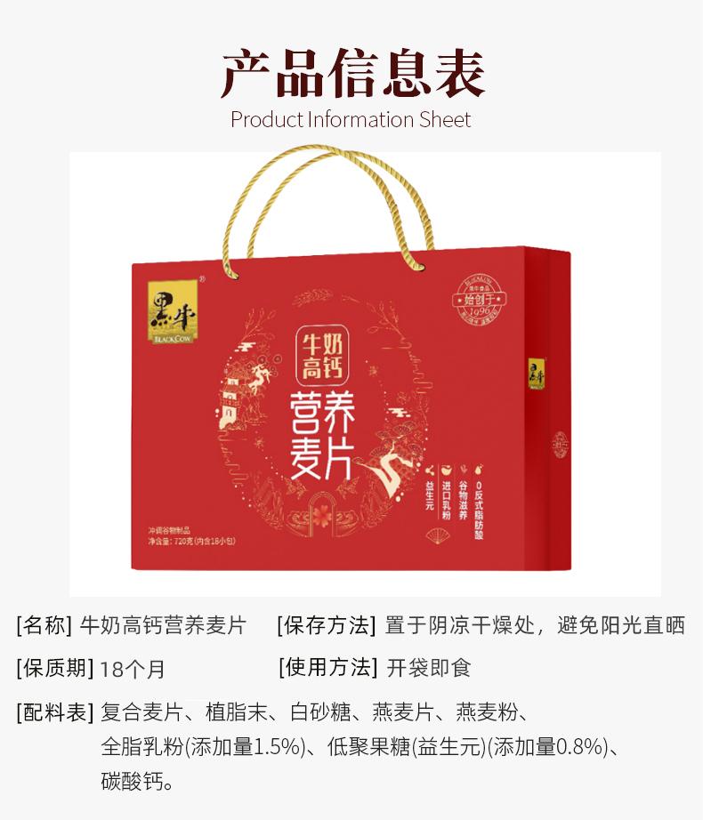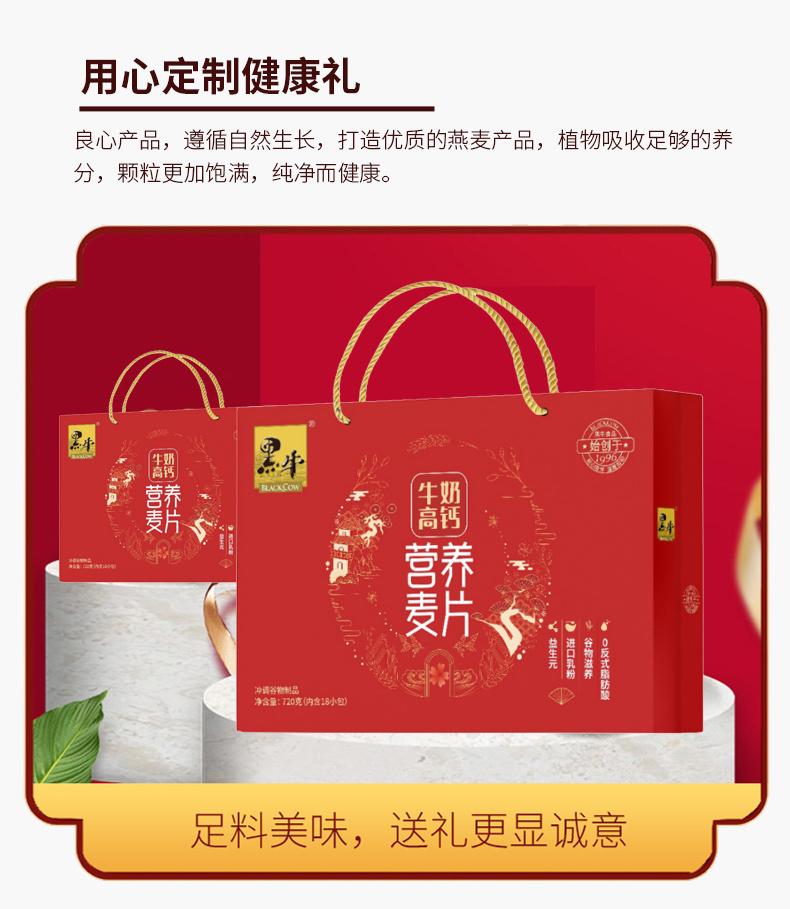 黑牛牛奶高钙燕麦片720g礼盒冲饮全谷物营养颗粒膳食纤维冲泡即食
