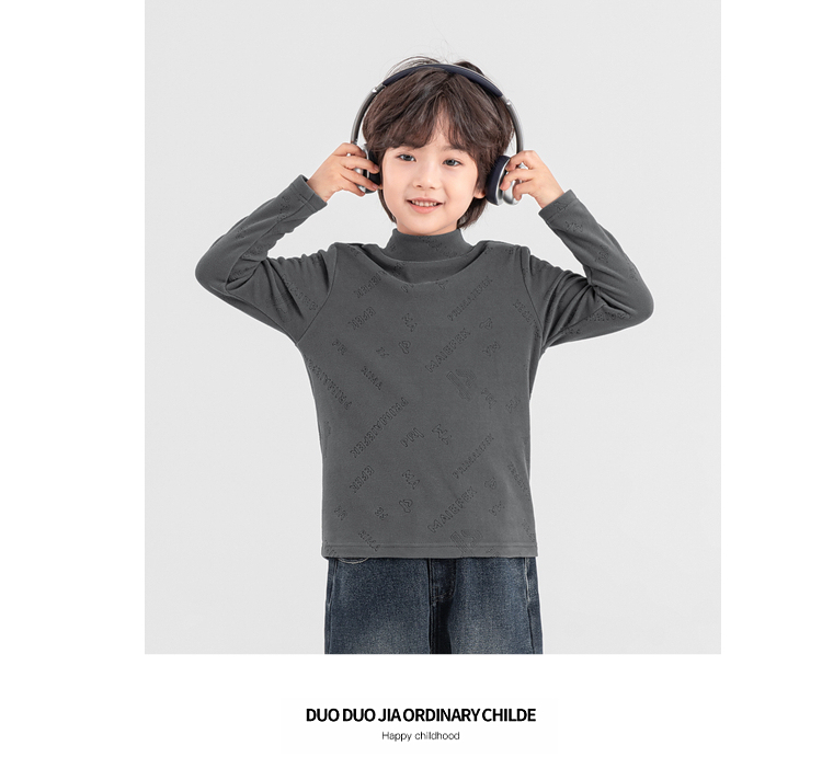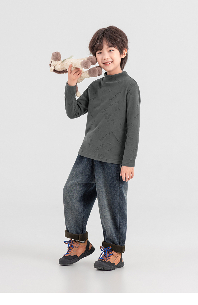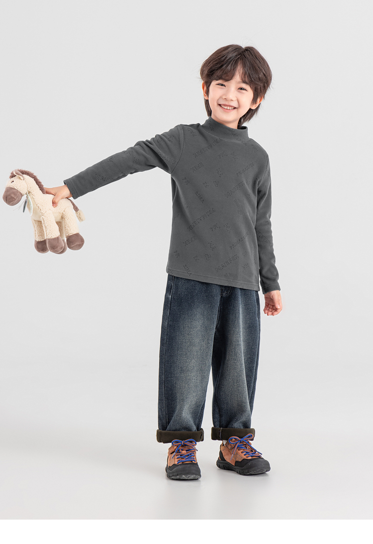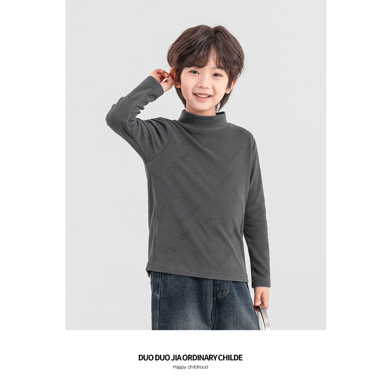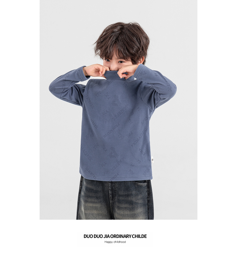 【件件底价,童装双倍积分】多多家男童德绒打底衫2025秋冬季新款儿童冬装男孩满印烧花T恤潮11107