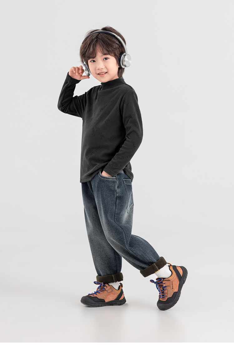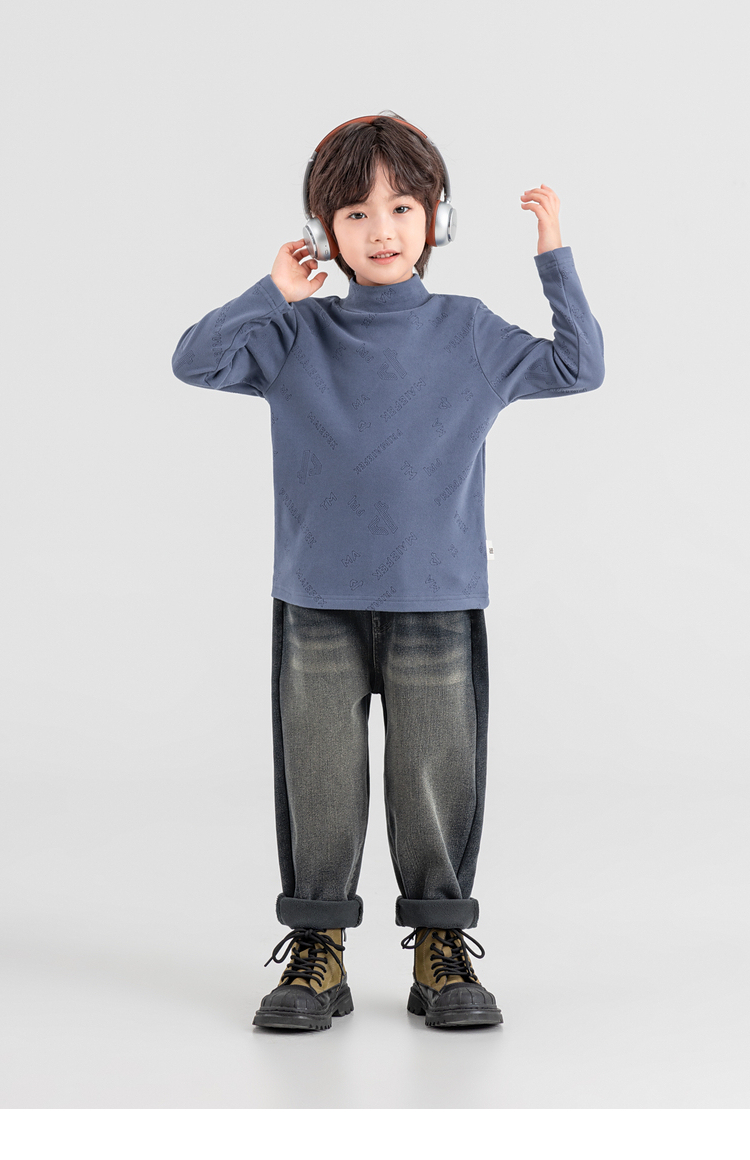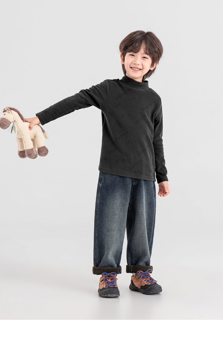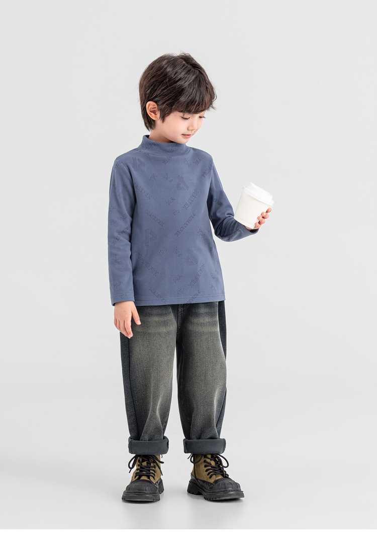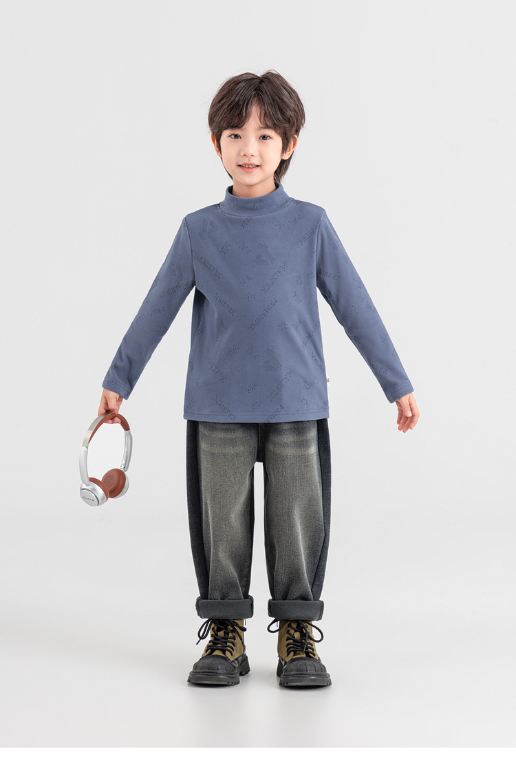 【件件底价,童装双倍积分】多多家男童德绒打底衫2025秋冬季新款儿童冬装男孩满印烧花T恤潮11107